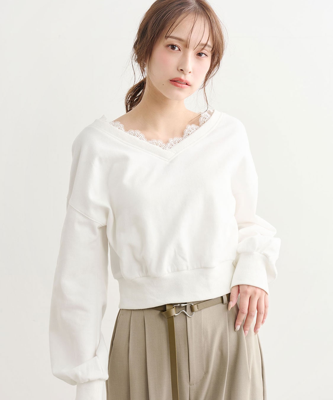 EVRIS フロントリボンレースクロップドシャツ 3726104002