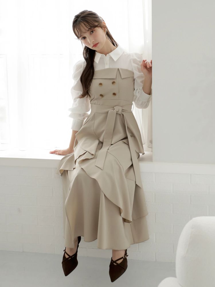 dazzlin アシメフリルシャツレイヤードトレンチワンピース 0226103019