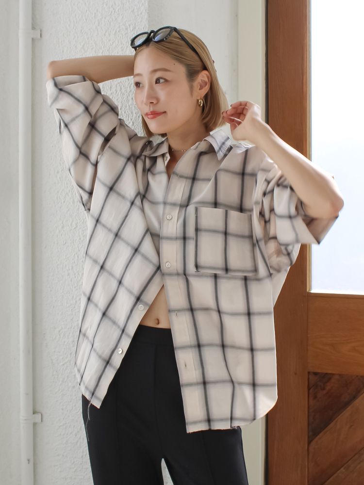 UNGRID カットオフデザインチェックルーズシャツ 1126104223