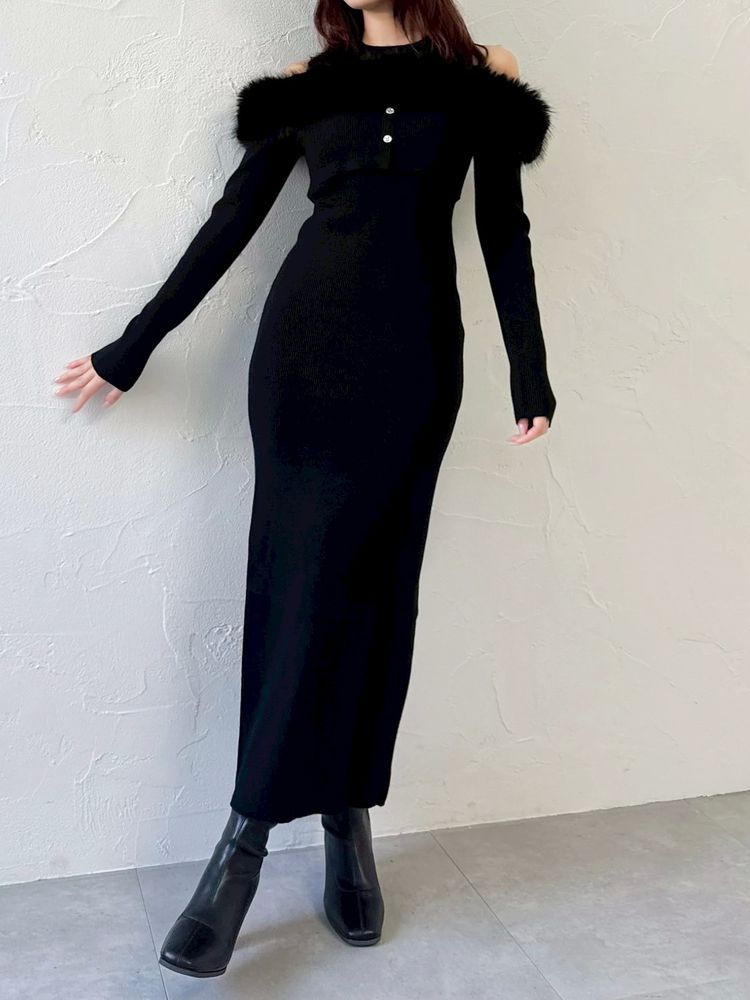 【SALE】 dazzlin オフショルファードッキングニットワンピース 再入荷 0226103046