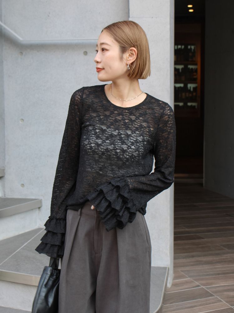 UNGRID オフショルデザインシアーロングスリーブTee 1125427226