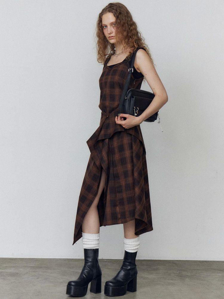 【SALE】 Ungrid コクーンチェックキャミワンピース 1125203409