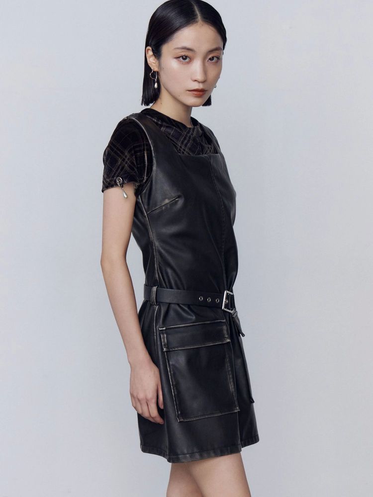 EMODA アウトポケットフェイクレザーワンピース 0425403504