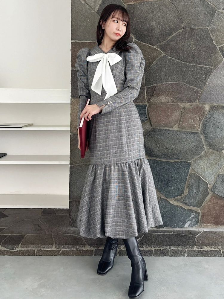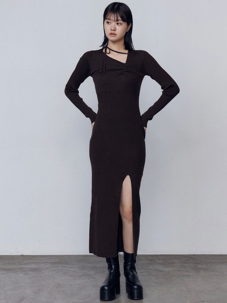 EMODA チョーカーギャザーフィットニットワンピース 0425503506