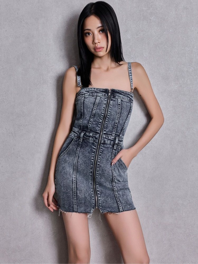 GYDA Symmetry GYDAフロントZIPスカートライクデニムタイトミニワンピース 0726203015