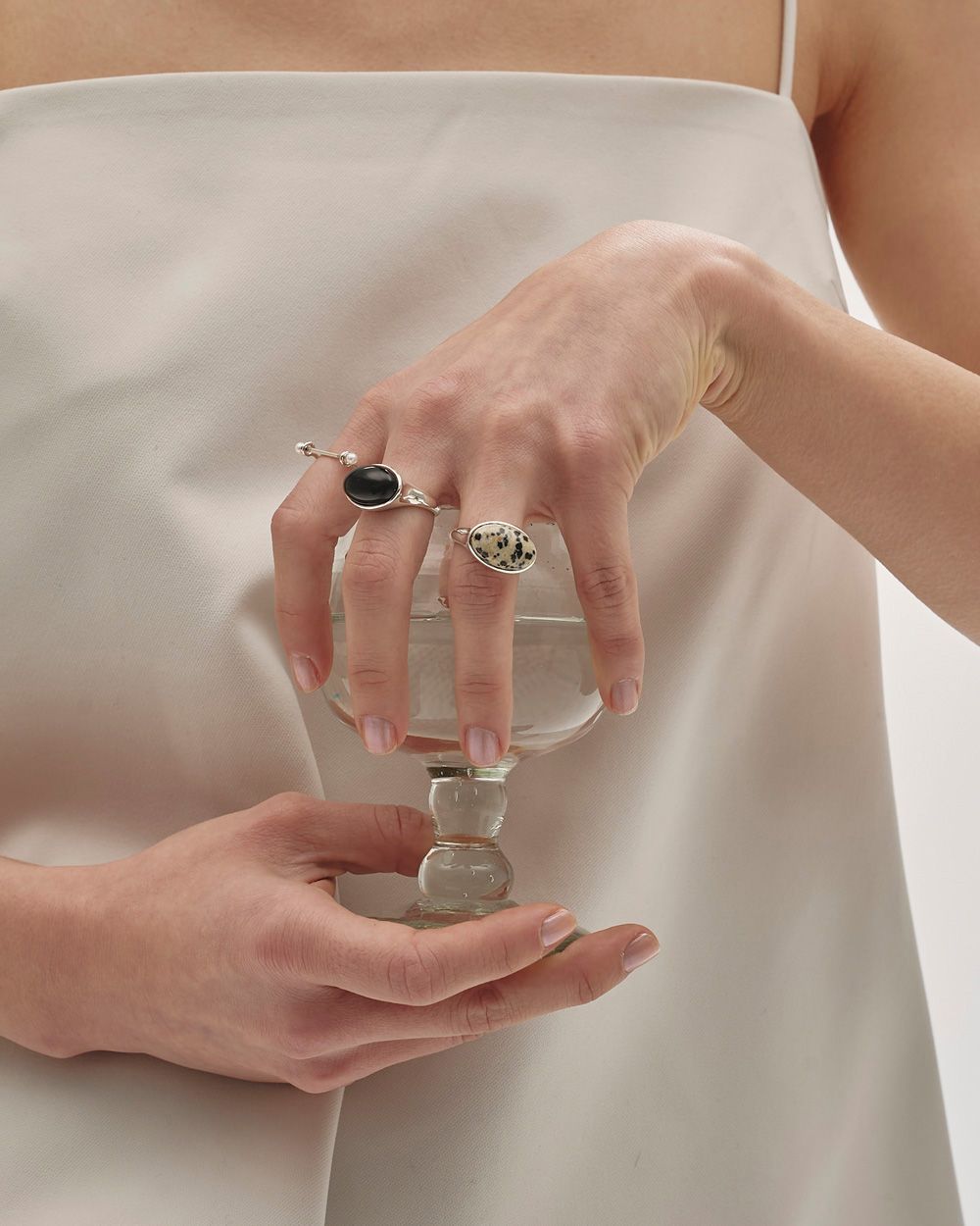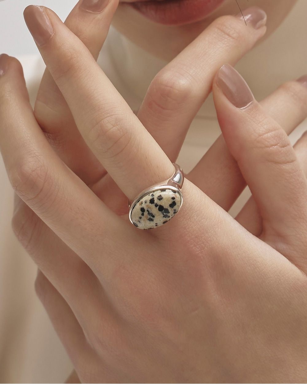 ブラックにはオニキス、ミックスにはダルメシアンジャスパーを贅沢に使用したリング。シンプルでありながらも存在感のあるデザインで、カジュアルからフォーマルまで幅広いスタイルにマッチします。 Silver925素材のため、独自のくすみなど経年変化を楽しんでいただけます。