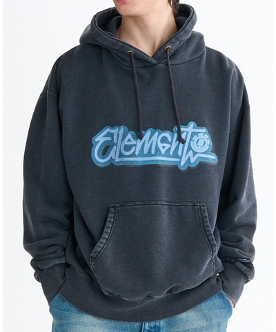 ポリエステルコットンの340gパーカー。裏地は暖かく肌触りの良い裏起毛。 前身にはストリートの落書きを彷彿させるTAGGINGを発泡プリントで表現。 左袖にはELEMENTのロゴがデザインされたネームを配置。 後身の右脇に気の利いたTAGGIGNデザインを刺繍で表現。