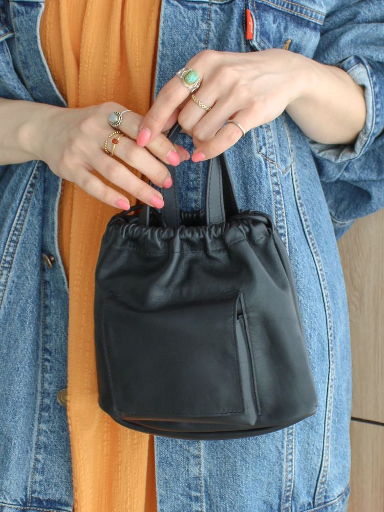 本革で仕立てたレザーバッグ。