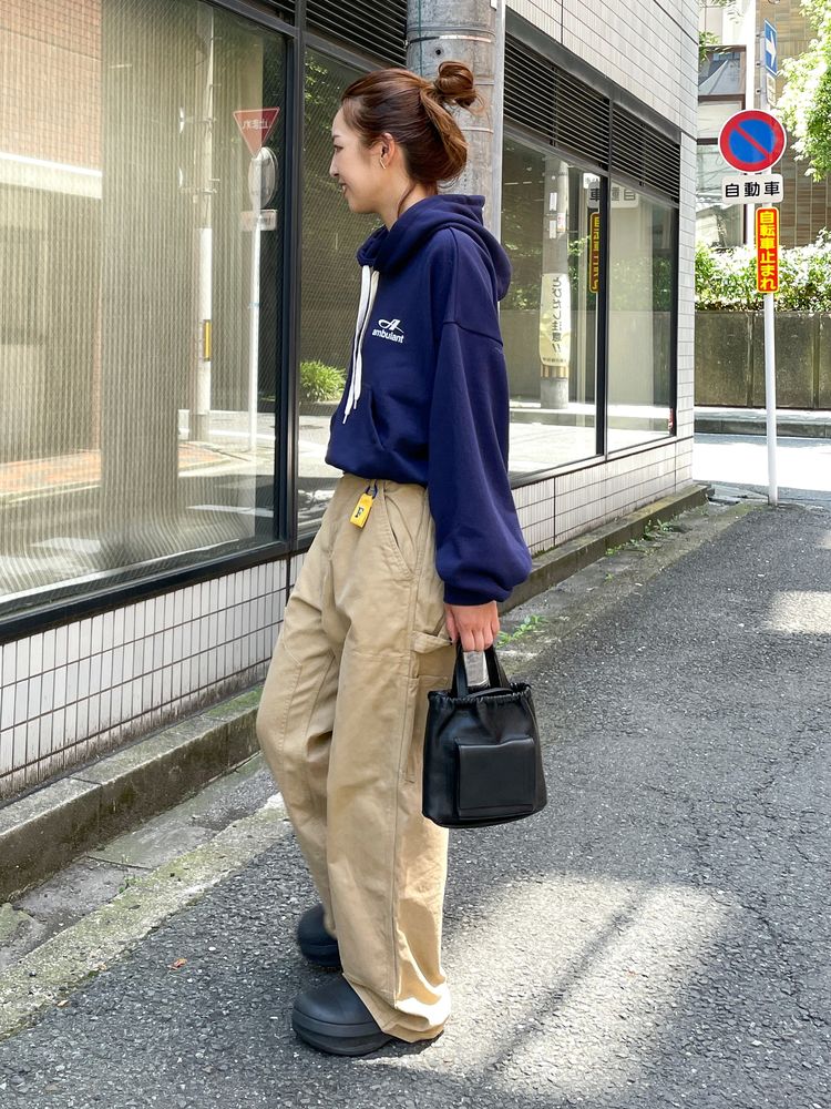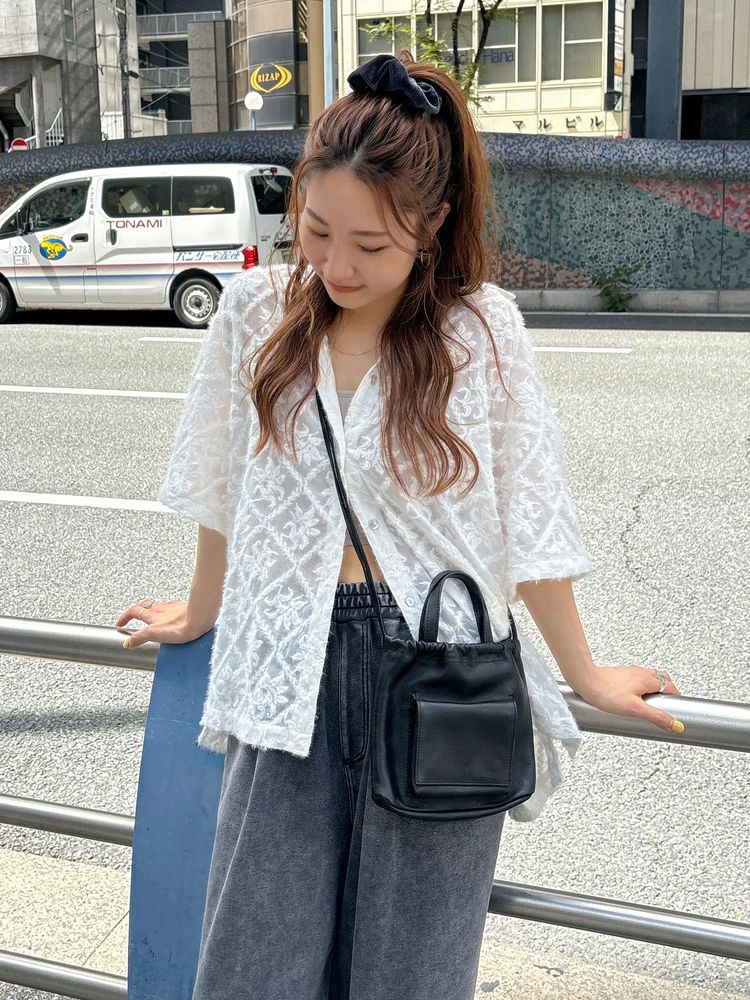 ショルダーの長いヒモと手持ちの短いハンドルもあるのでスタイルに合わせてお使いいただけます。
