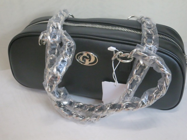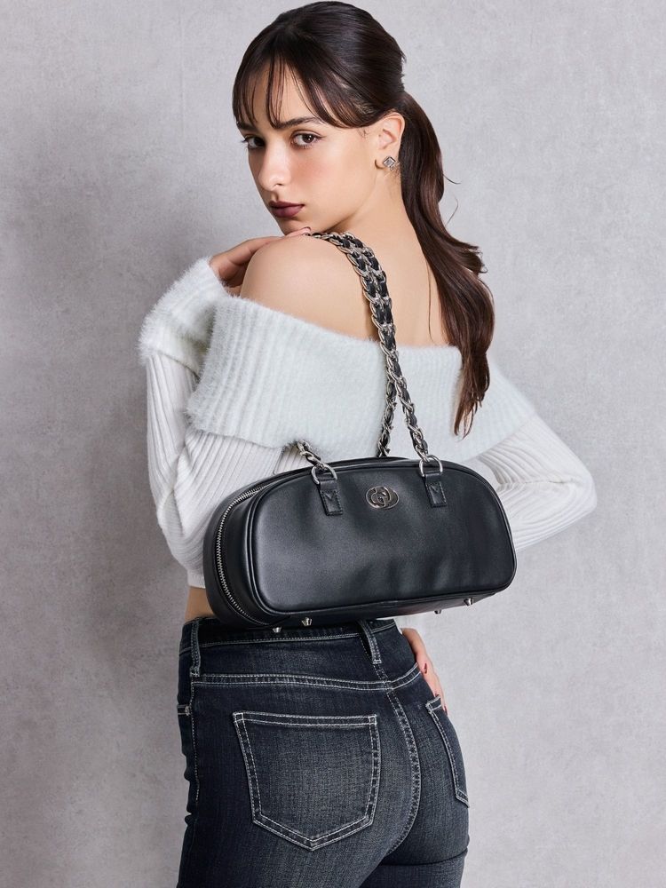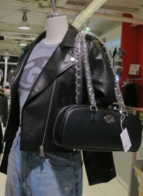 シンプルなデザインに、チェーンやモチーフの金具使いがエッジの効いたバッグです。