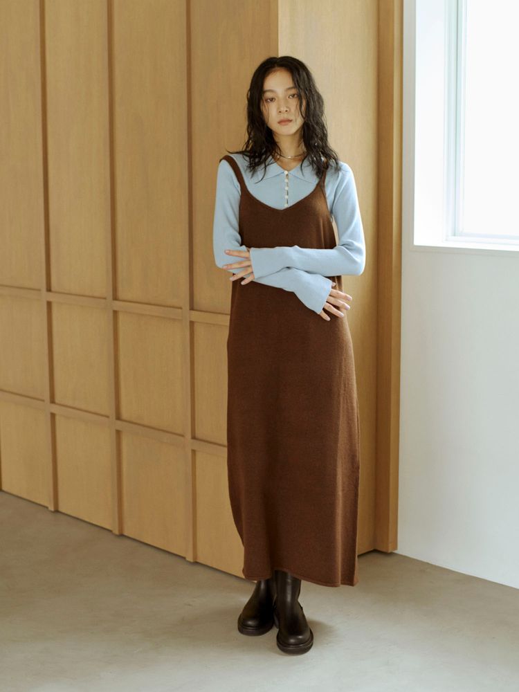 柔らかなニット素材が女性らしい雰囲気を演出しつつ、Iラインシルエットですっきり見せを叶えてくれます。