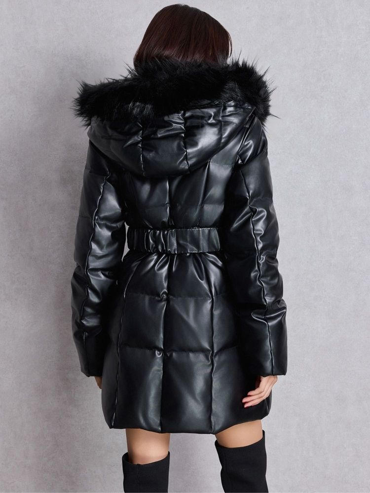 GYDA GDベルト付きフェイクレザーロングダウンコート 0725500620