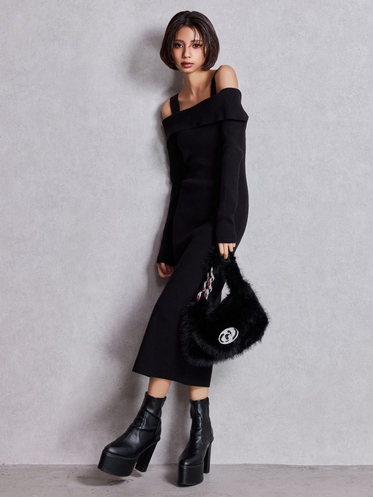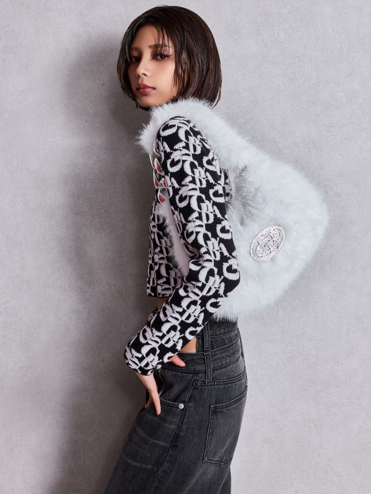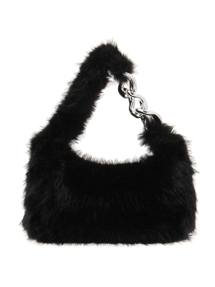 冬らしいエコファーのBAGに今季らしいビジューのバックルをアクセントに! 重くならないように軽めのチェーンでワンランク上のエコファーBAGに仕上げました。