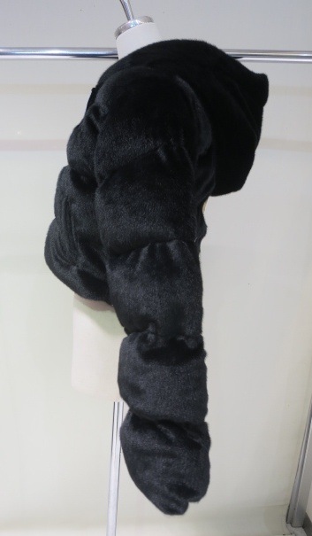 レオパードのリボンを付けたキャンディガルフィが後ろに入ったスーパーショート丈のファーコートです。 中綿がしっかり入っているので保温性が高く真冬のお出かけにぴったりです。 ボリュームのある素材とシルエットですが切替が入っていることでメリハリがつき、 着ぶくれせず着用していただけます。