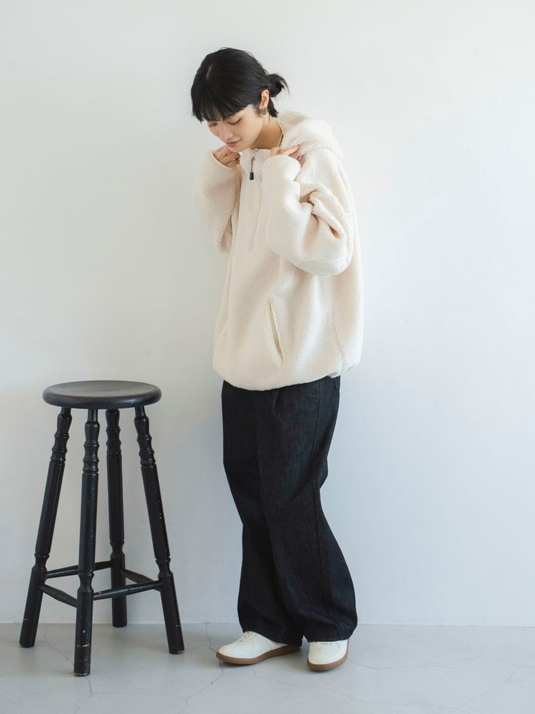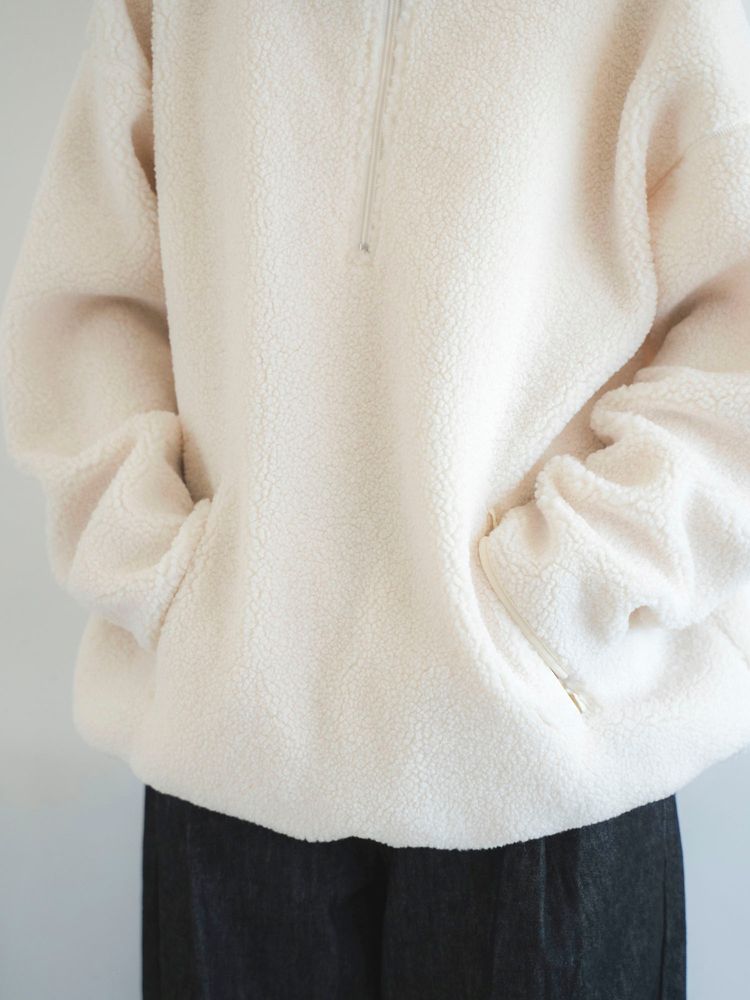 ハーフジップ仕様にしており、引き手にはドローコードを使用してカジュアル感のある雰囲気に。