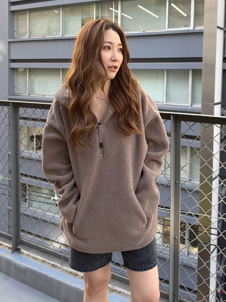 ヒップが隠れるくらいの着丈。絞って短くした着方も可愛くておすすめです。