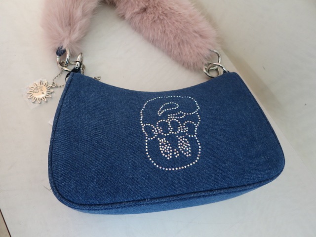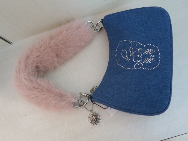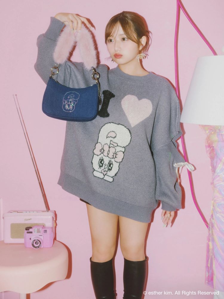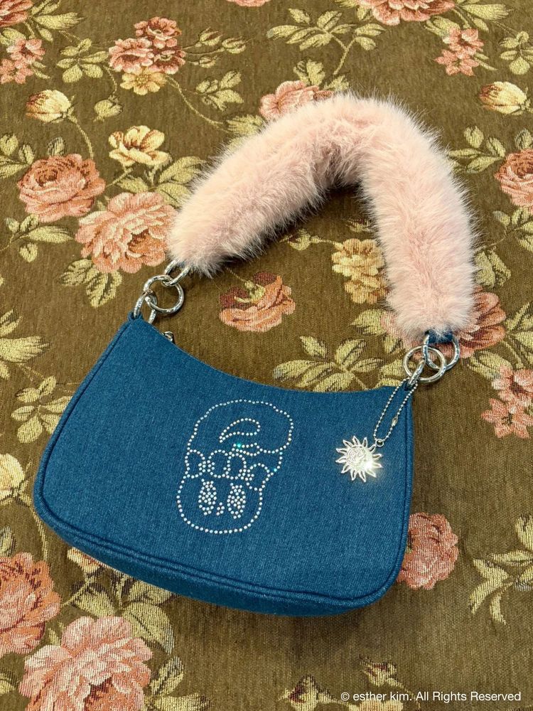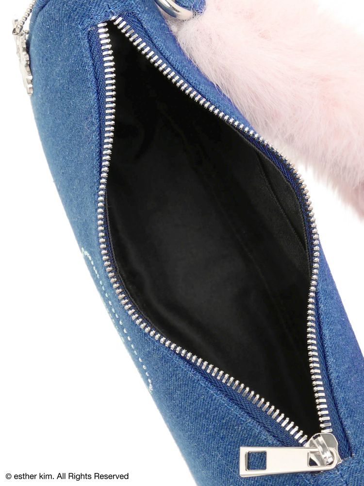 ふわふわしたファーとデニムの異素材ミックスが目を惹く 「Esther Bunny × EVRIS」コラボの限定アイテムです。 Esther Bunnyのキャラクターをラインストーンのグラフィックにし エッジを効かせてEVRIS(エヴリス)らしさを表現しました。 コンパクトですが、必要なアイテムがしっかり収まるサイズ感で デイリー使いにもぴったりのハンドBAGです。 ピンクのフェイクファーハンドルは デザインのアクセントになっており、ハンドバッグとして持つだけで 秋冬のスタイリングに華やかさをプラスしてくれます。 EVRISオリジナルのサニーモチーフチャームをプラスし コラボ限定の特別なデザインのBAGです。