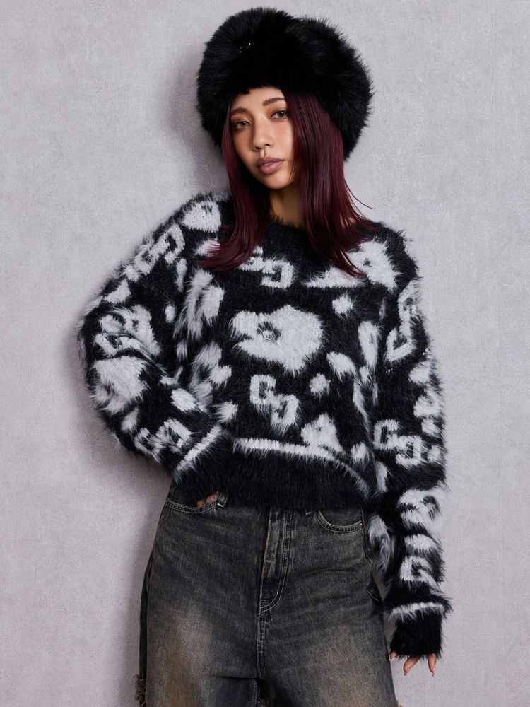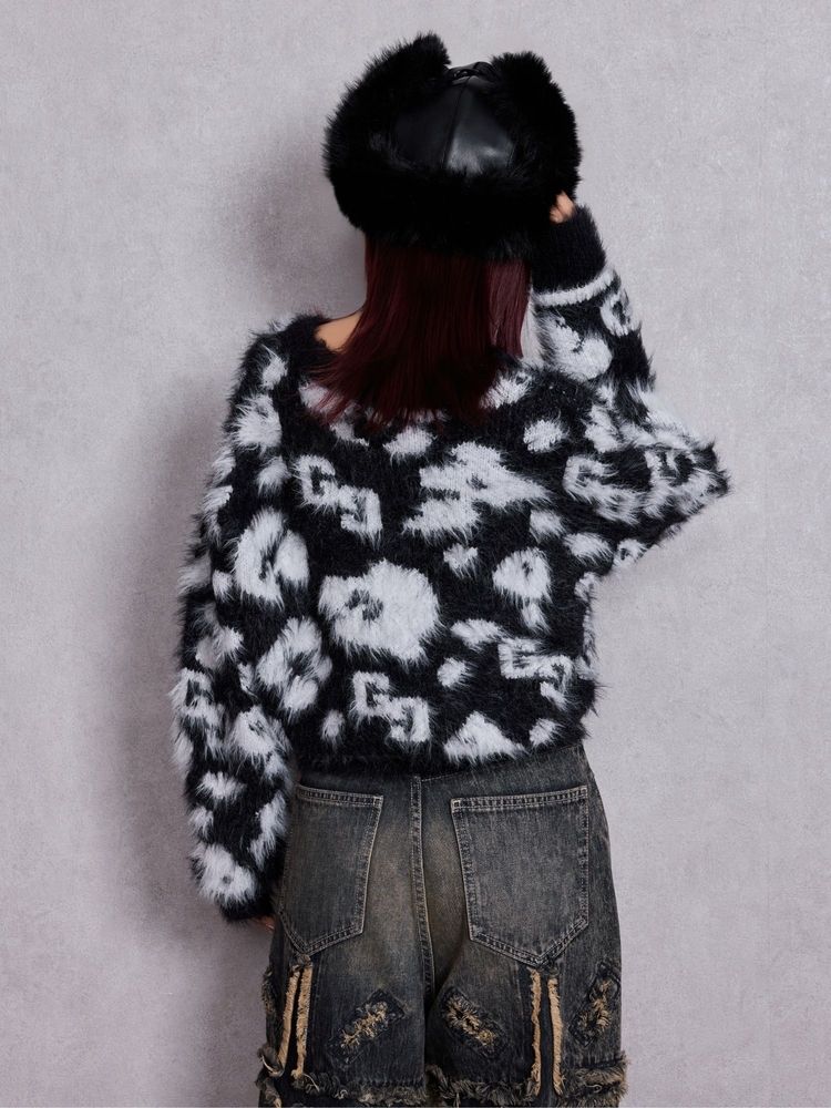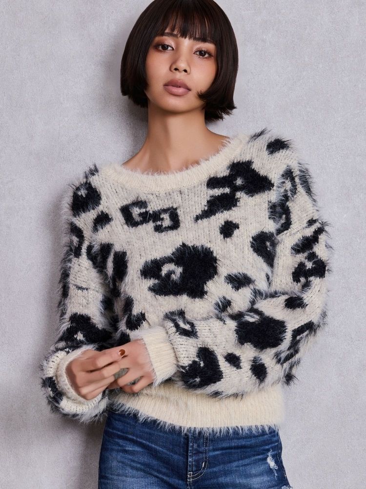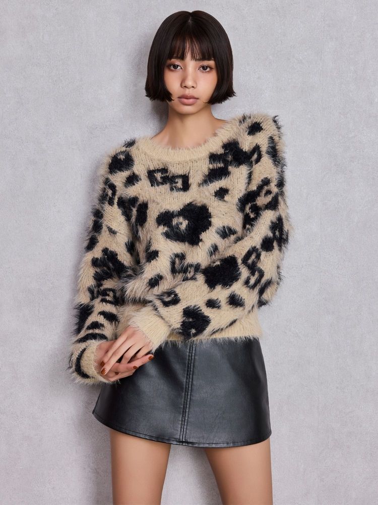 GYDA GG Leopardシャギーショートニットトップス 0725626139