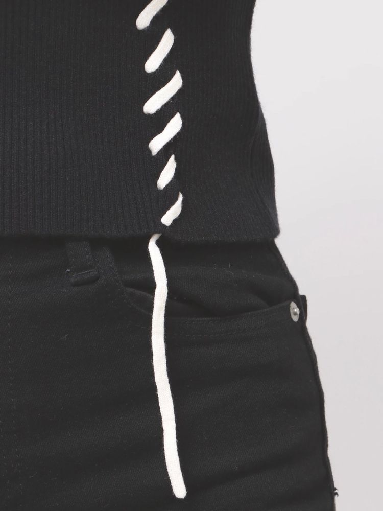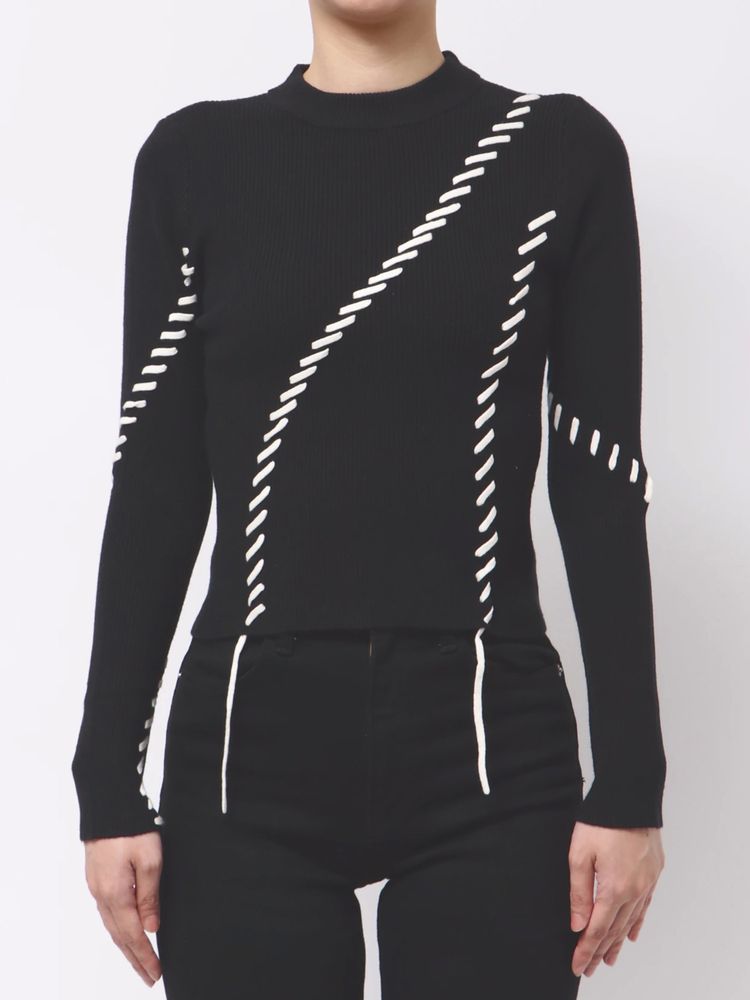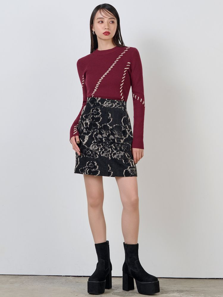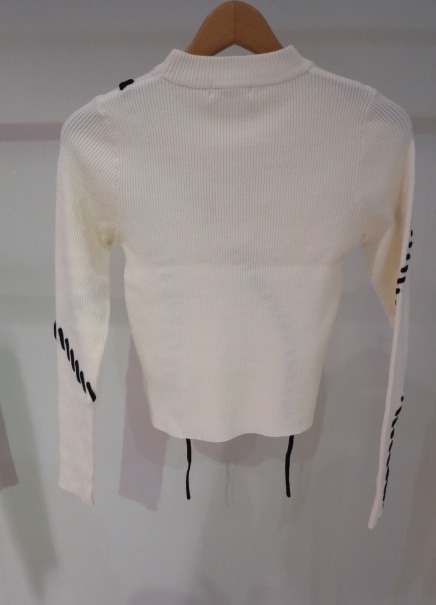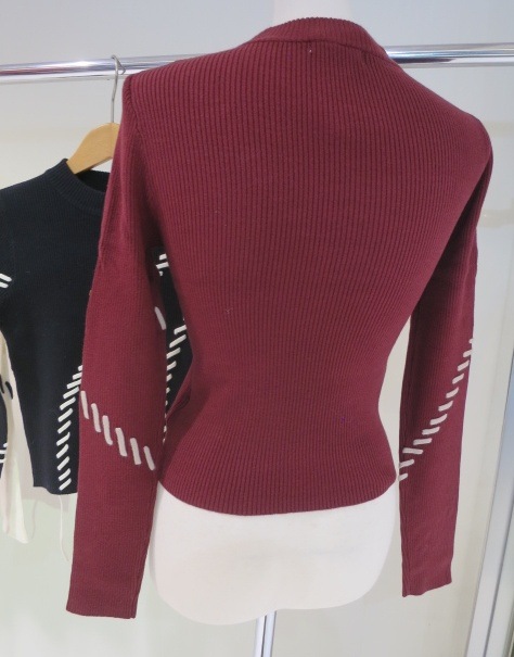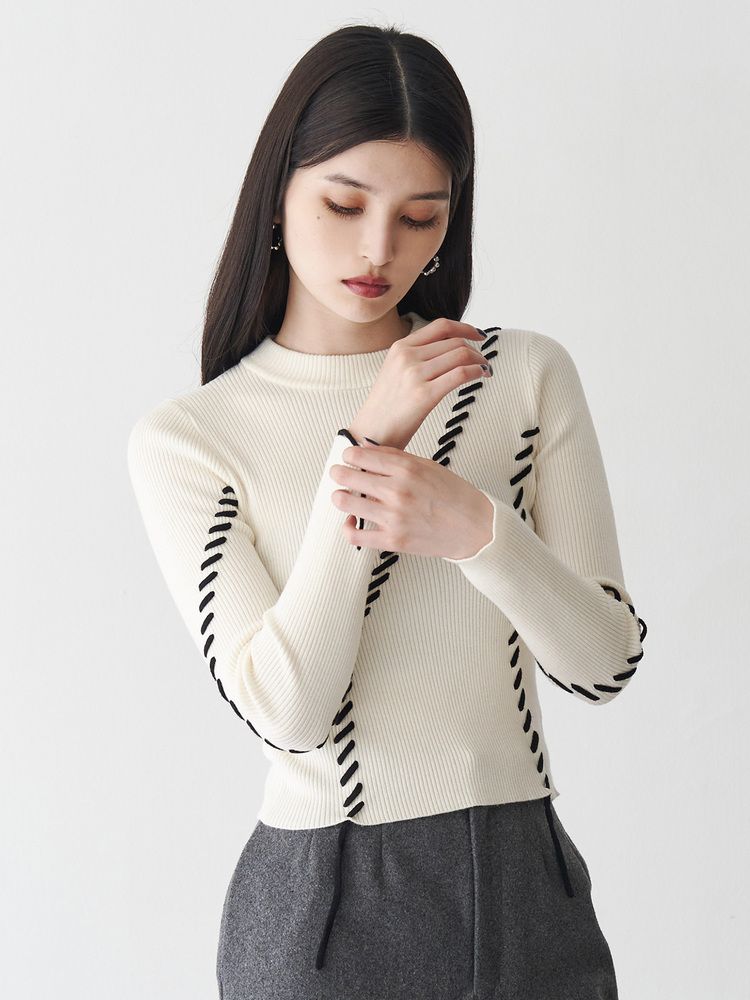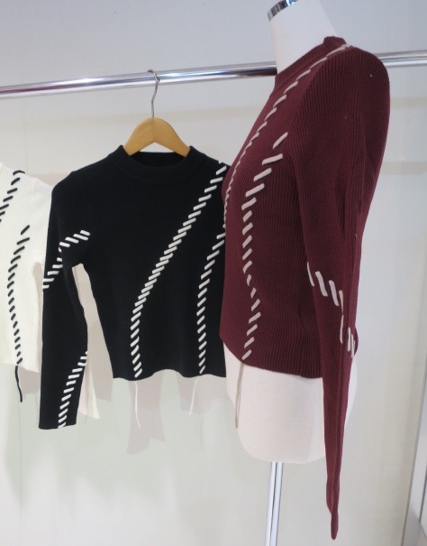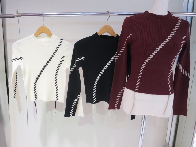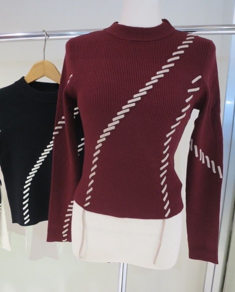 ステッチワークがアクセントに 360℃可愛いデザインニット ■アイテム トレンドのステッチワークを効かせたリブニット。 ランダムなラインのステッチが かっちりしすぎない女性らしさを演出します。 配色のステッチが目を引くポイント。 アウターを羽織ってもステッチワークが見えるので 冬のアウターコーデのアクセントになります。 コンパクトなサイズ感なので、ワイドパンツや ナロースカートなどどんなボトムにも合わせやすいアイテムです。