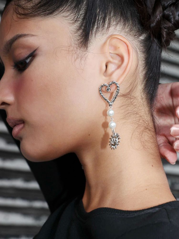 EVRISで人気のサニーモチーフにトレンド感のある、ハートがCATCH部分についているオリジナルピアスです。 大振りのピアスなので存在感があり、耳元を華やかに見せてくれます。