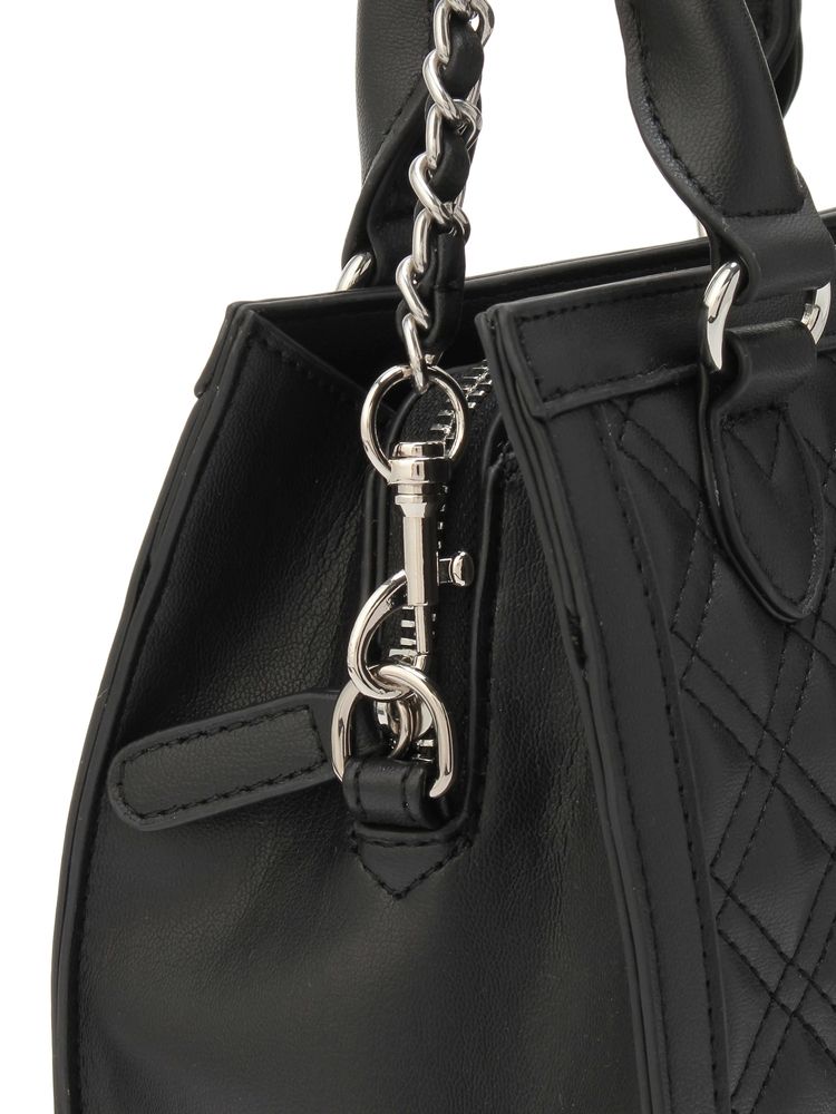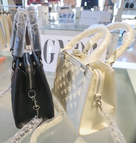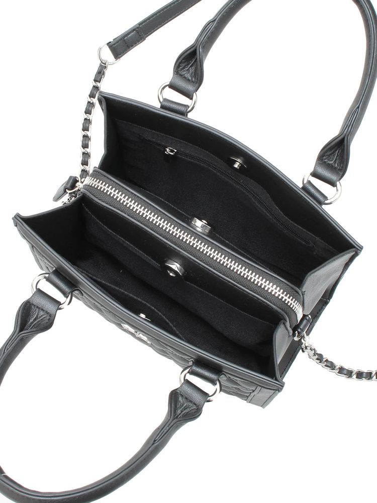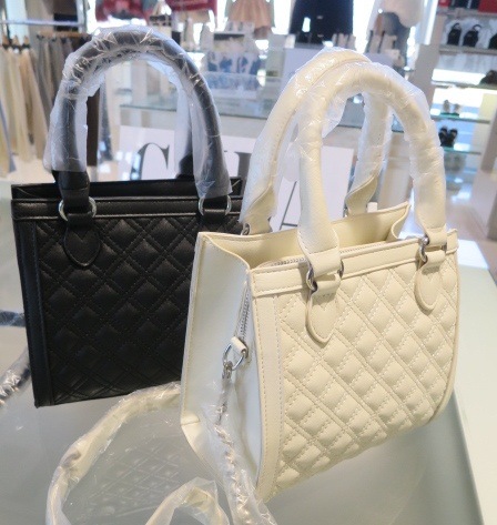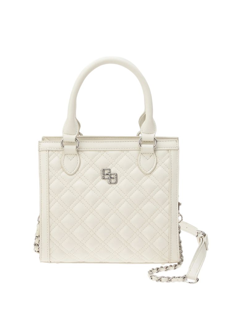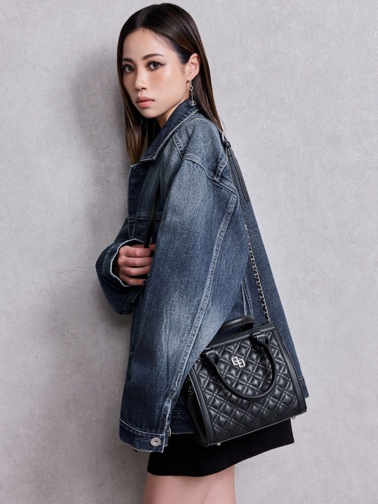 オリジナルGGロゴを付けたキルティング加工したボックス型の2WAYバックです。 本体についてるハンドルと取り外し可能の肩掛けがついた2WAY仕様です。 ガーリな雰囲気に女性らしいビジューのモチーフをつけました。