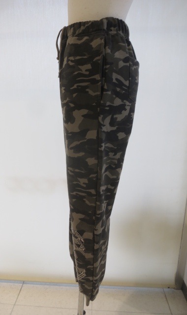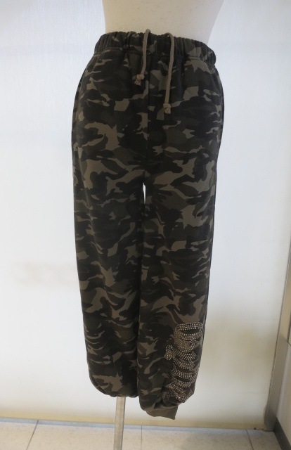 Gがさりげなく入ったオリジナル迷彩柄と、 大人気のGYDAロゴがヘマタイトカラーのビジューで裾についているのがポイントのジョガーパンツです。 透き通ったクリアストーンではなく金属光沢のあるヘマタイトカラーであることで高級感を演出しています。 裾がリブになっているジョガーパンツなので身長問わず着用していただきやすいです。