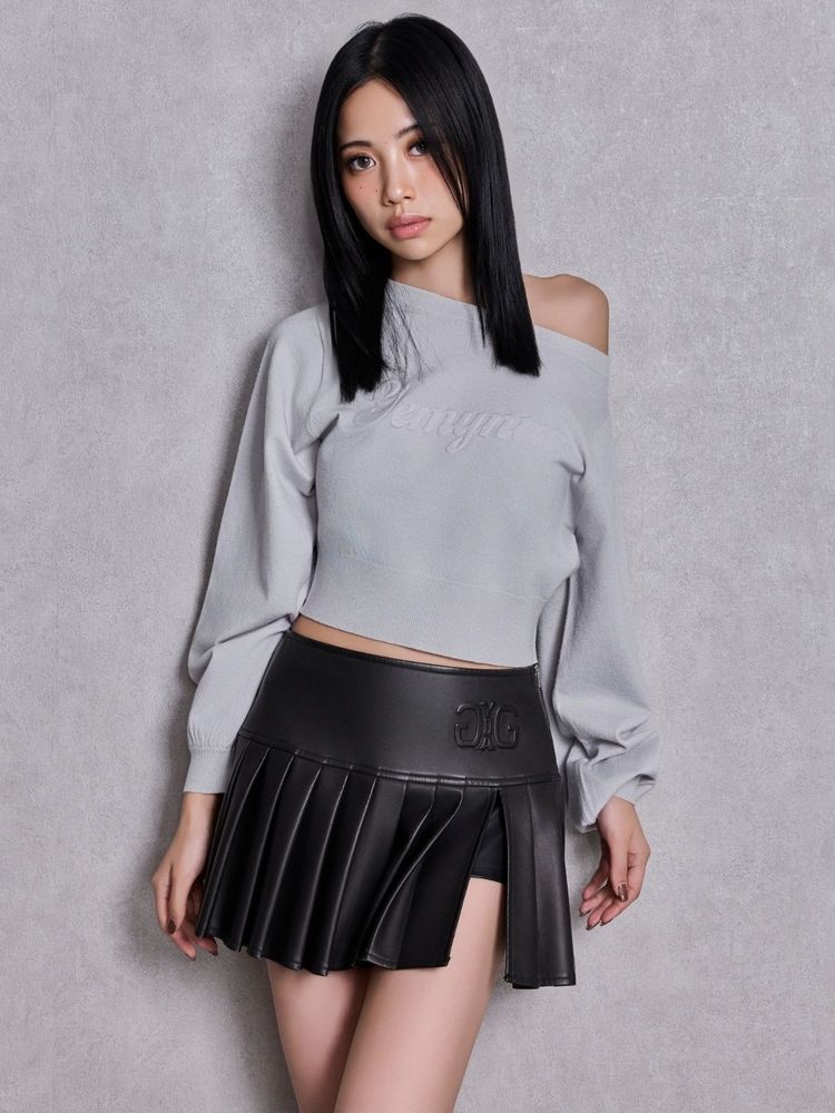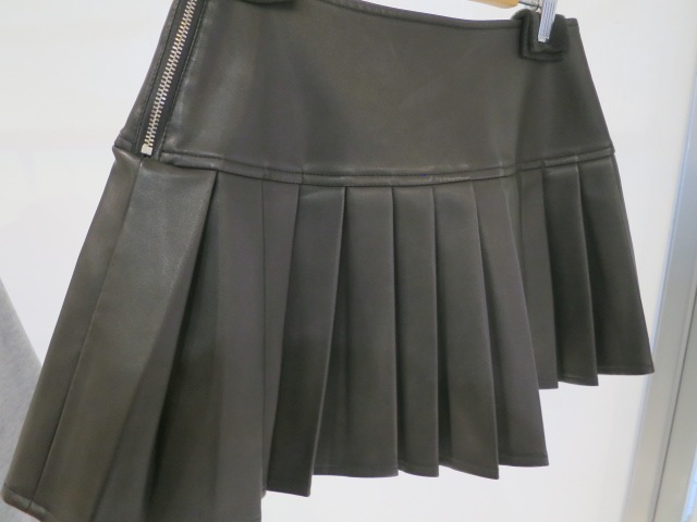 加工を施したフェイクレザー素材を使用し、サイド施したSymmetry GYDAのエンボスがポイント。 プリーツ加工や、スリットから見えるインナーショーツにも拘った1着。 サイドファスナーで着脱もしやすきなっています。