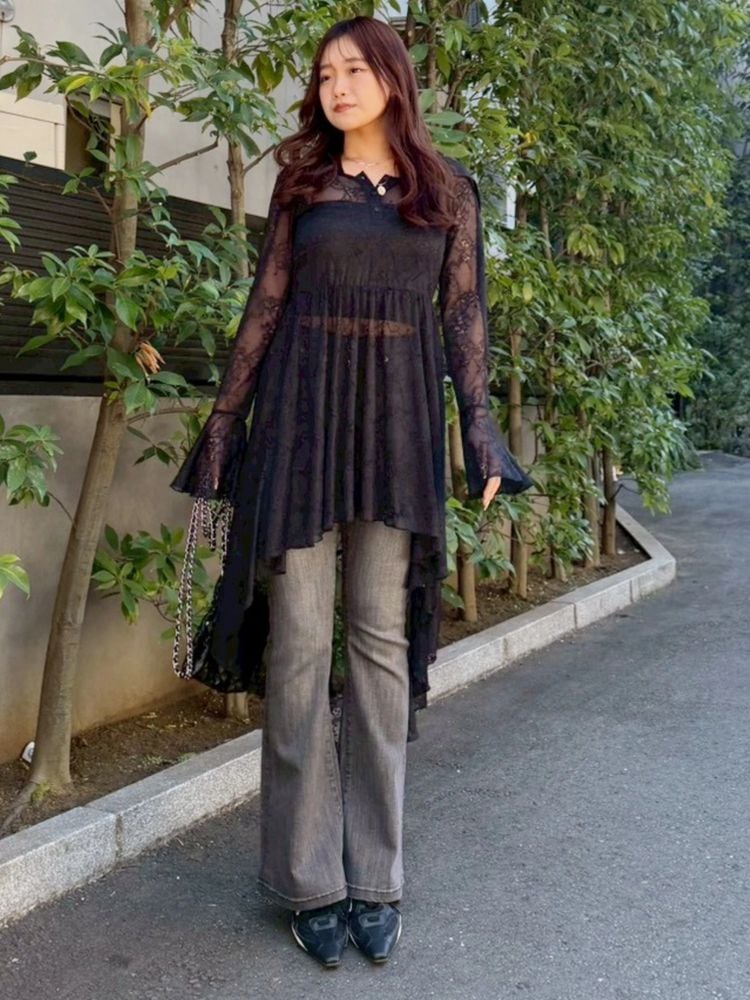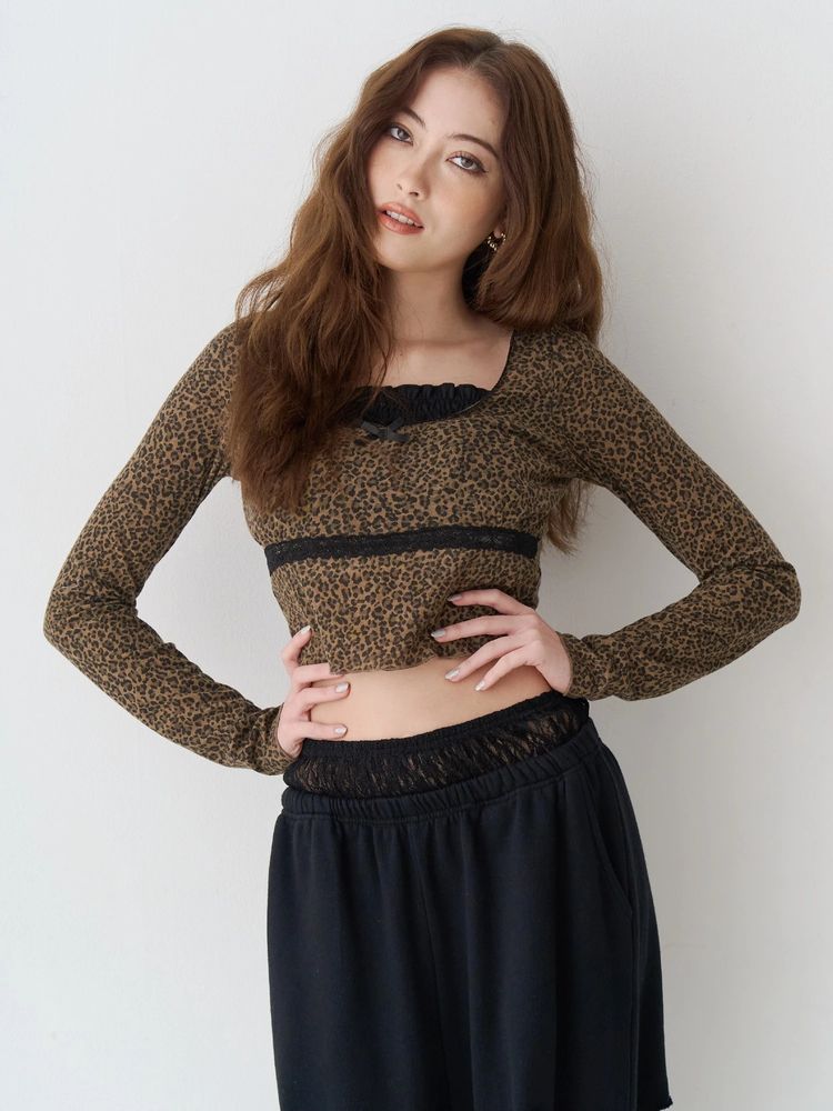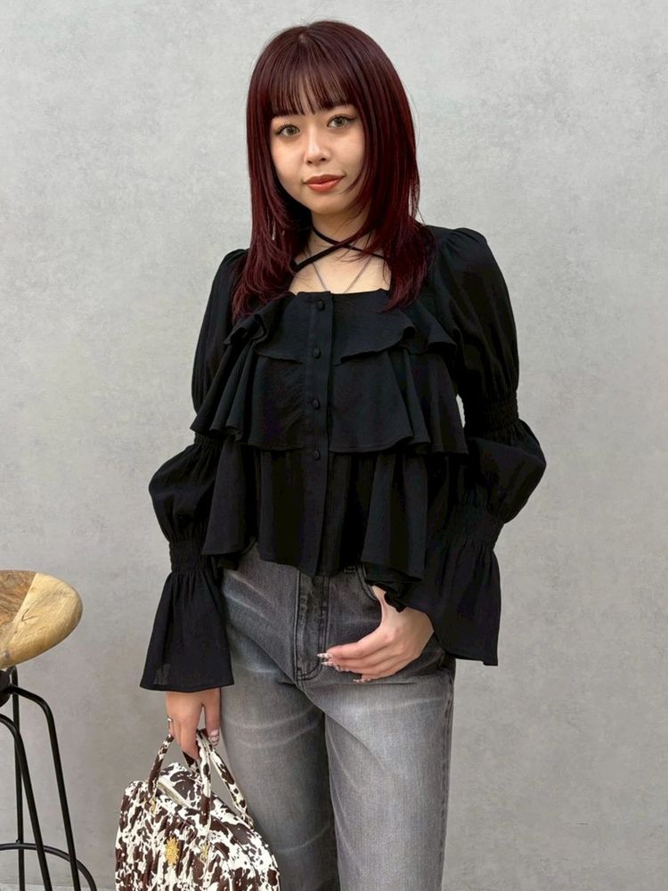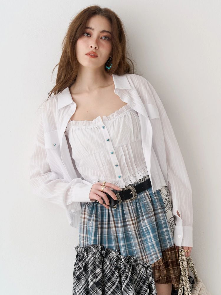 EVRIS フロントリボンレースクロップドシャツ 3726104002