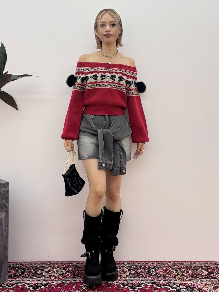 【SALE】EVRIS オリジナルグラフィックオフショルニットトップス 3725526022