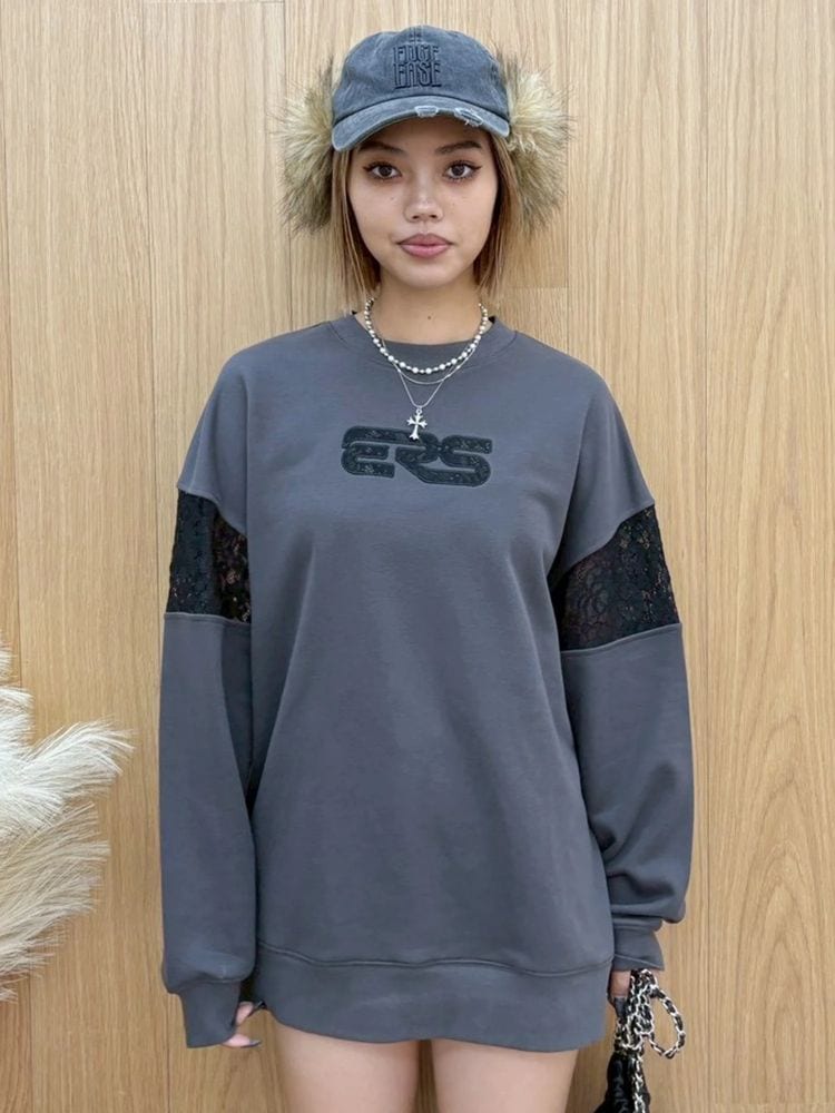EVRIS レースEmbroideryスウェットトップス 3726127016
