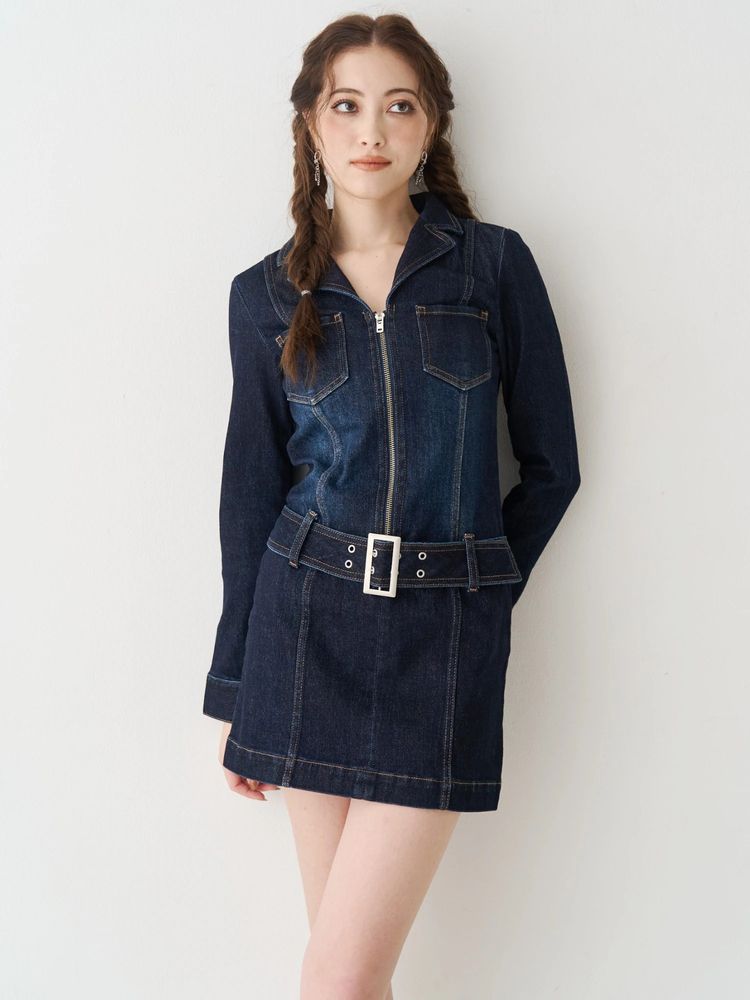 EVRIS ストレッチデニムシャツミニワンピース 3726103007