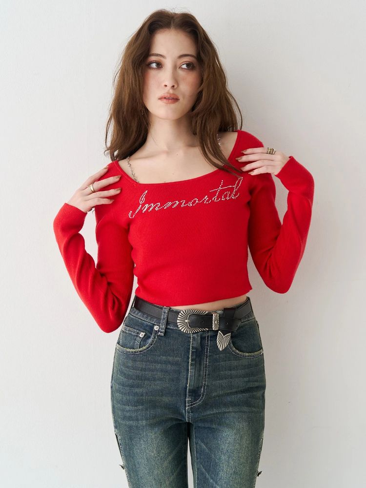 EVRIS ラインストーンロゴニットトップス 3726126020