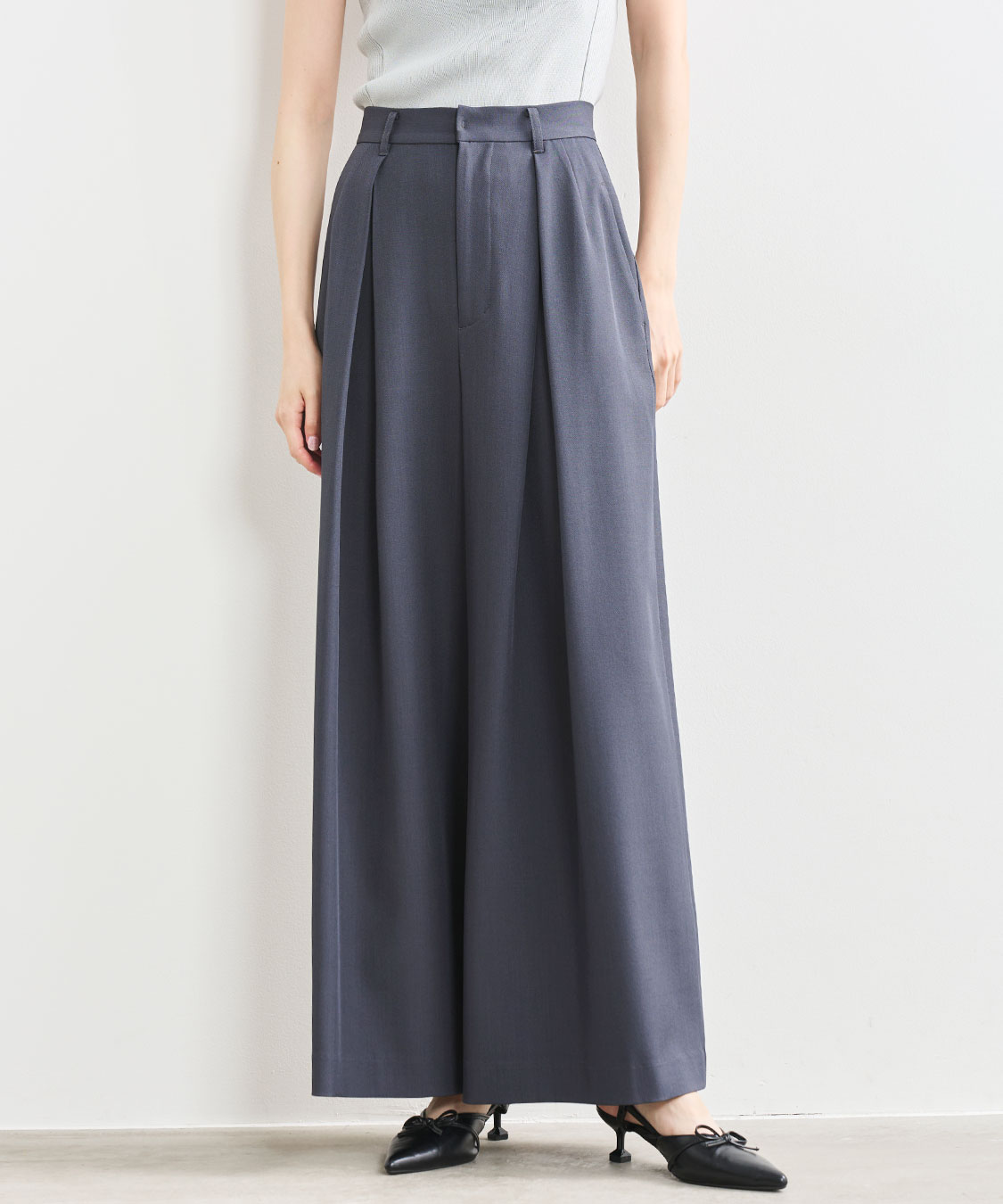 COCODEAL 合皮デザインベルト付きタックパンツ 75616251