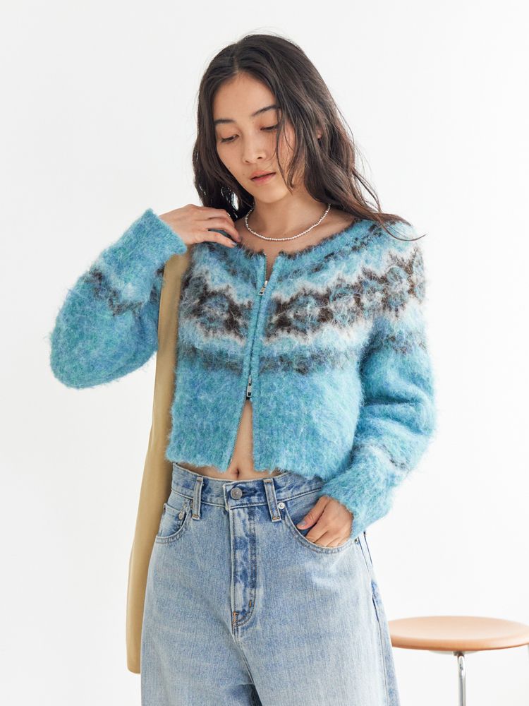 【SALE】vingtrois シャギージャガード Vネックカーデ 986-14169