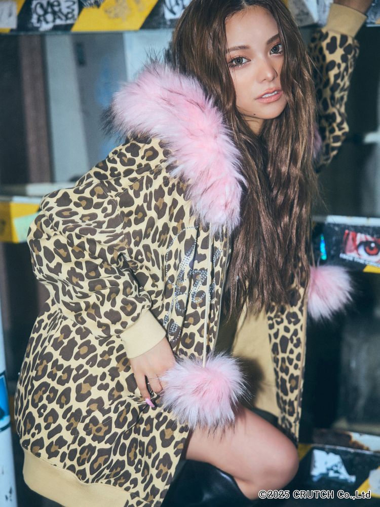 GYDA GYDA×GALFY bijou logo leopard BIG パーカー 0725629399