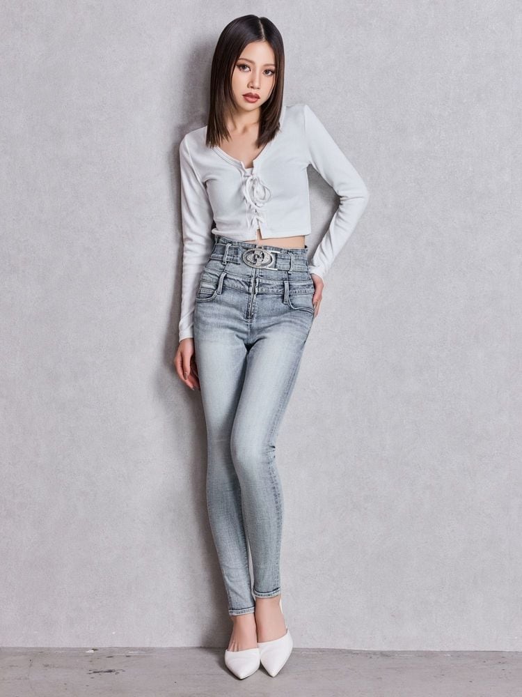 GYDA ハイウエスト GD bijou MOLDフロントZIPスキニーデニムパンツ 0725624127