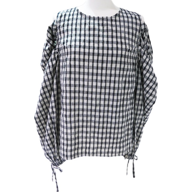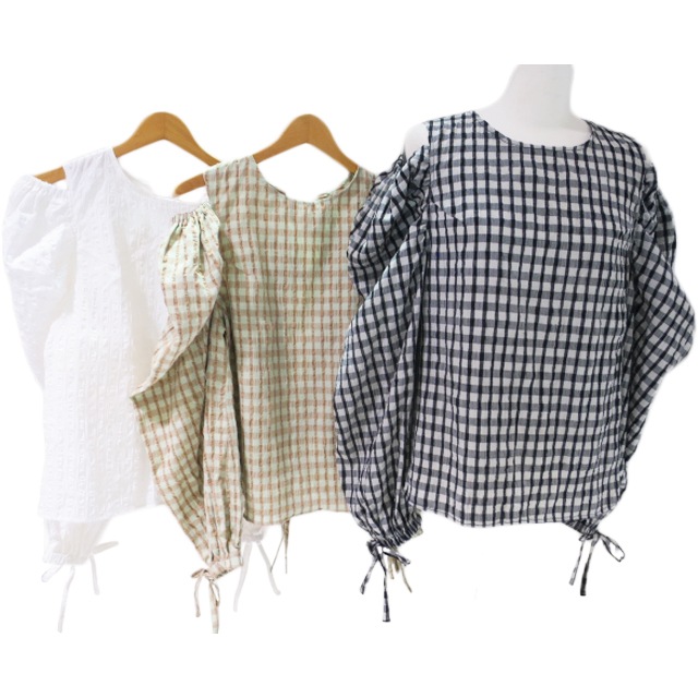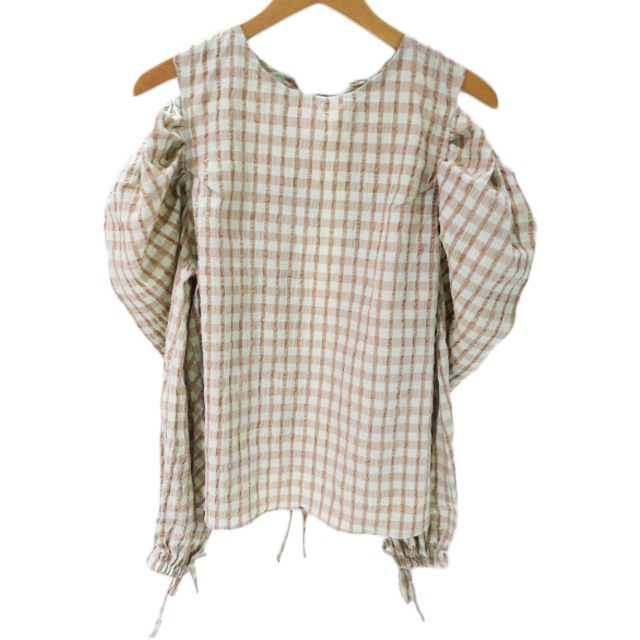春らしいギンガムチェックにトレンドの肌見せを取り入れました。