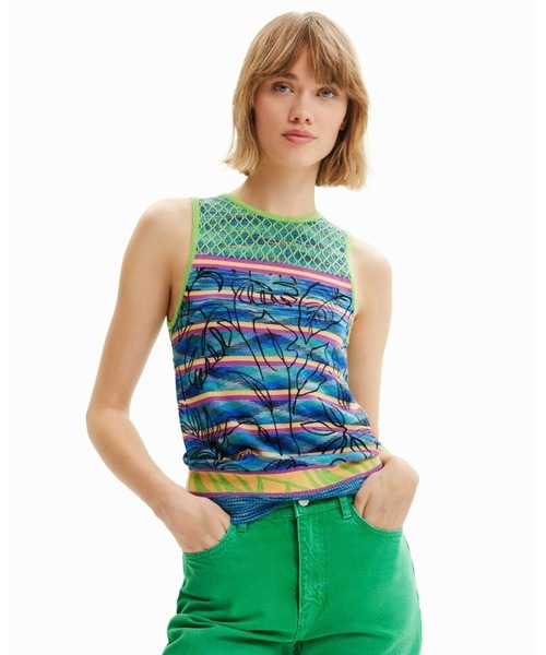 【SALE】 desigual 花柄 リブ編み ミディワンピース 24SWVK39