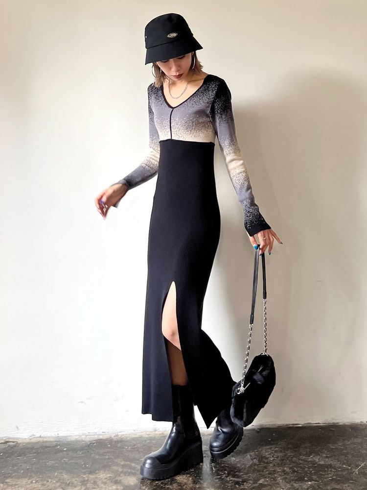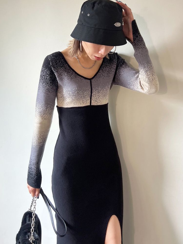 伸縮性のあるキックバックの良い糸を使用しているので、 程よく身体のラインが出て女性らしく着られます♪ 胸下で切り替えているので、非常に脚長効果が出てスタイルを良く見せてくれます◎ また、裾スリット開きでさりげない肌見せがポイントです。 ライトミックスのカラーではグラデーション柄で上品な印象で着用していただけます!!