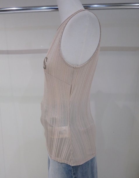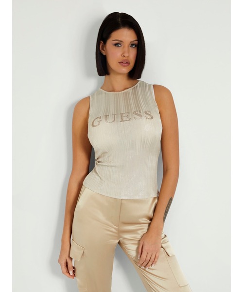 ボディコンシャスなシルエットでシュッとした美人スタイルが叶うタンクトップ。柔らかく滑らかな手触りの素材で着心地もよくなっています。胸元のグリッターロゴが歩くたびに煌めき華やかさをプラス。一枚着るだけで綺麗さと可愛らしさのあるスタイルが決まるアイテムです。春や夏などの暖かい季節には一枚で、秋や冬などの寒い季節には重ね着をしてレイヤードスタイルを楽しめ、オールシーズン組み合わせを楽しめる一点。