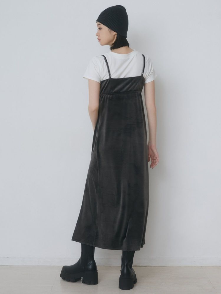 ベロア素材を使用したマキシ丈ワンピース タイトなシルエットですが、胸元にはギャザーディテールを施し体型をカバーしてくれます。 ベロアのリボンで調整可能なので、幅広いサイズ感での着用が可能です。 サイドにあしらわれた深めのスリットで女性らしい印象に。 ベロア素材で秋を先取りできるワンピースです。