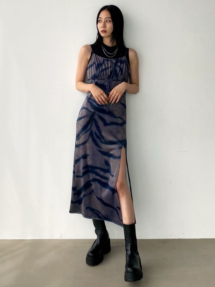 【SALE】 EMODA ギャザースリットベロアワンピース 0424403002
