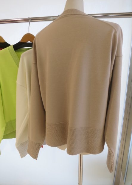 シンプルなシルエットに一部ラメを施すことにより今年らしいカーデになりました。