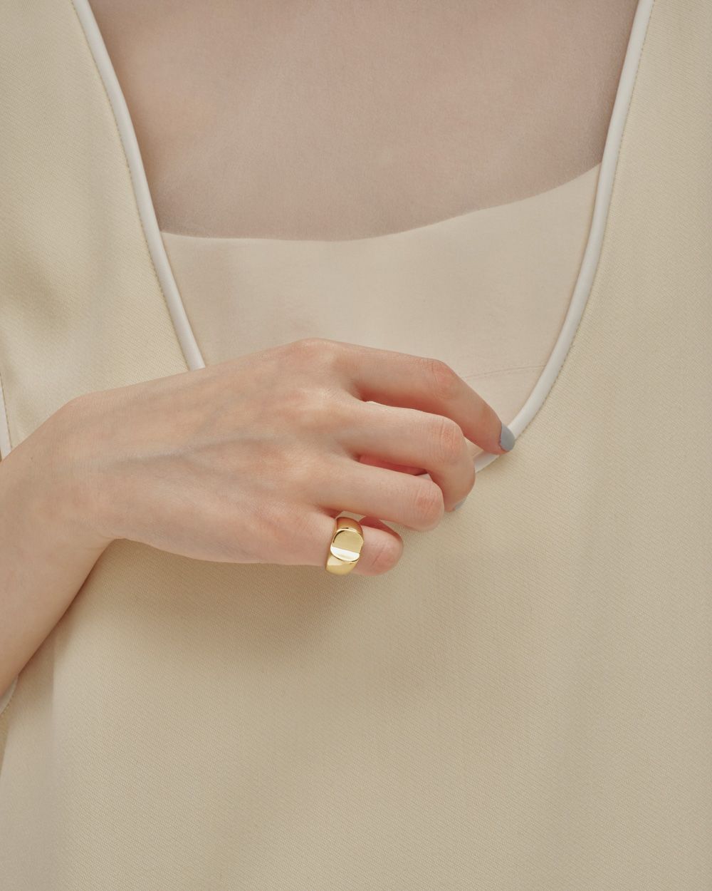 ボリューム感のあるシンプルで洗練された印象のリング。無駄な装飾をそぎ落としたミニマルなデザインが魅力。カジュアルなスタイリングからきれい目なスタイリングまで幅広く馴染むアイテムです。飽きのこないデザインで、ギフトにもおすすめ。
