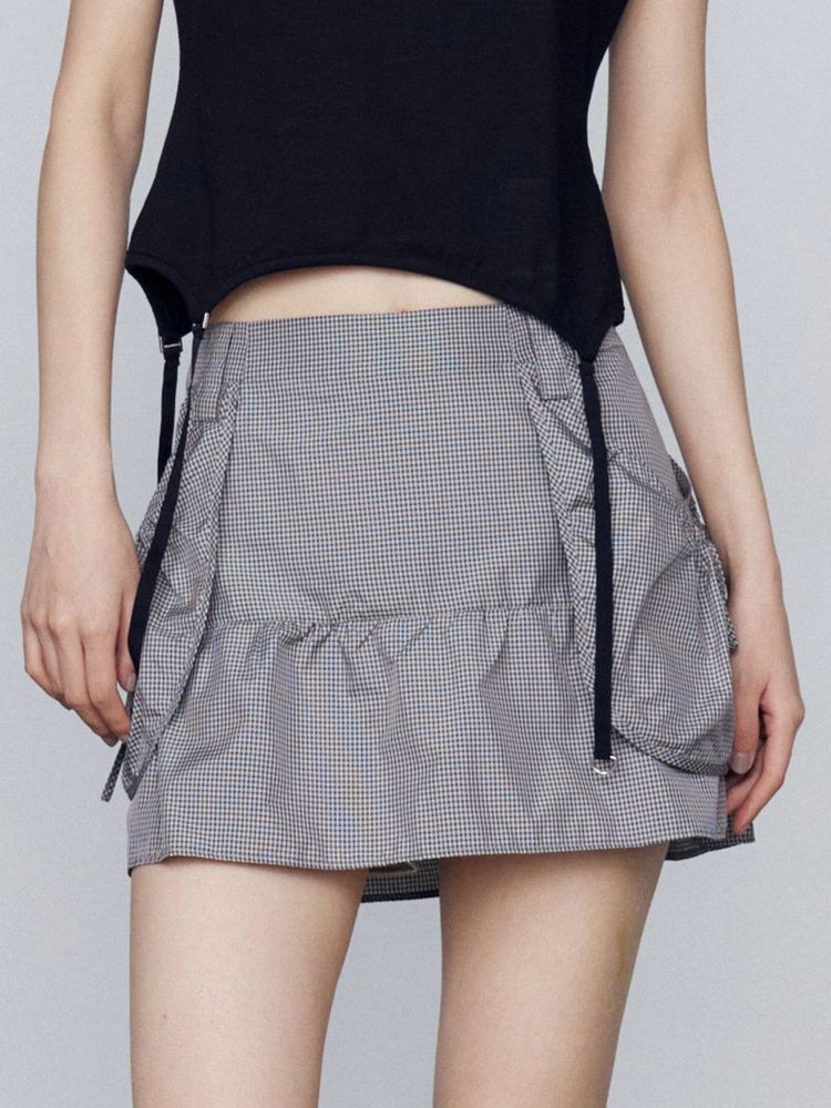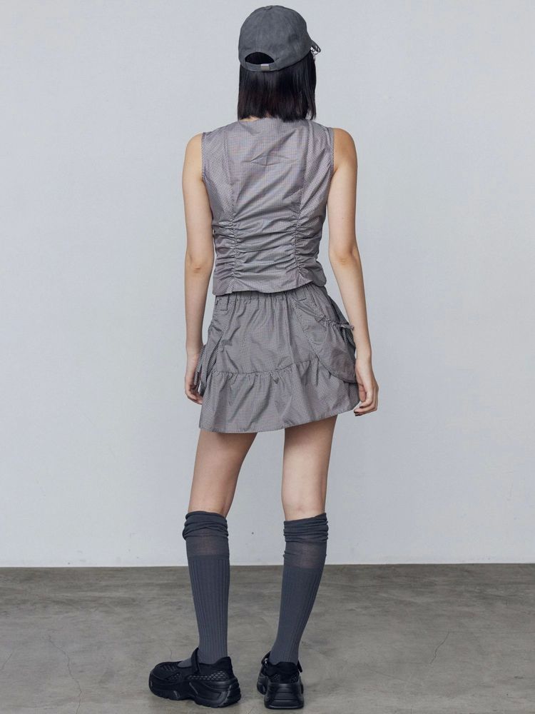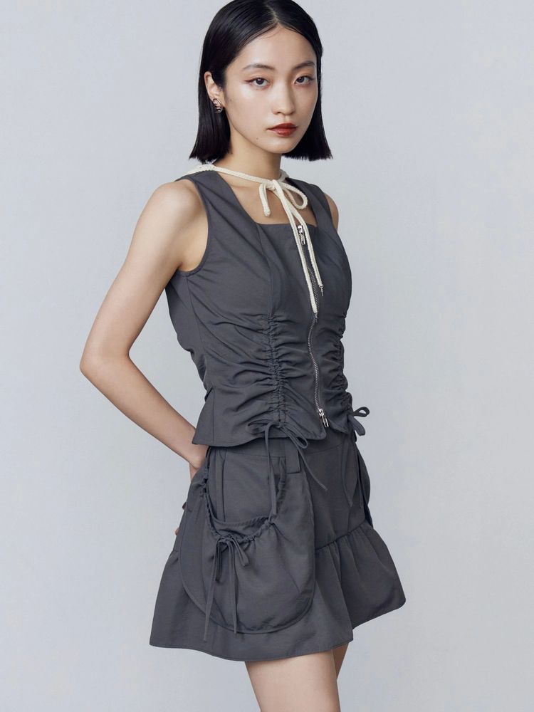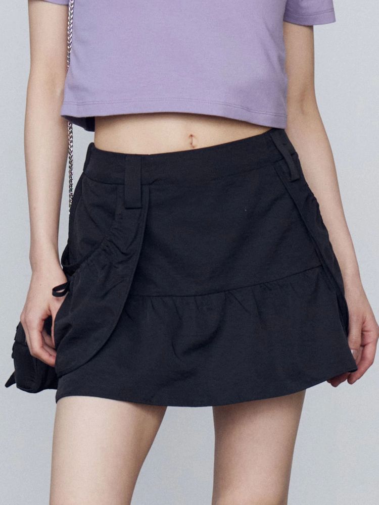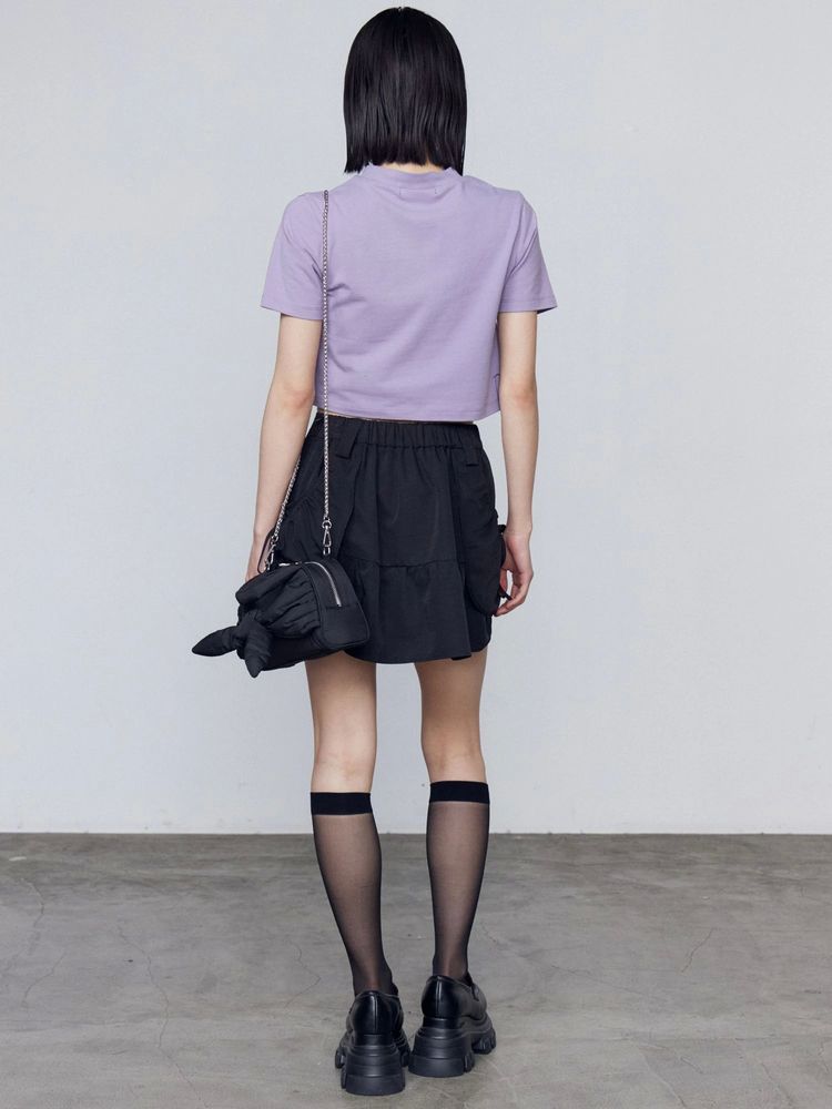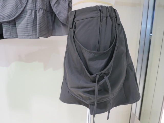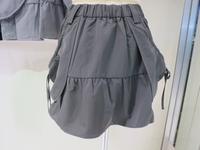 腰回りのレイヤードポケットがポイントのナイロンミニスカート セットアップ着用アイテム↓ ハングポケットフレアミニスカート(042540870901) ■デザイン 裾に切り替えを入れ自然に広がるフレアシルエットで脚が綺麗に見えます。 ウエストは後ろウエストのみゴム仕様。 柔らかく落ち感のあるナイロン素材はカジュアルさを軽減してくれます。