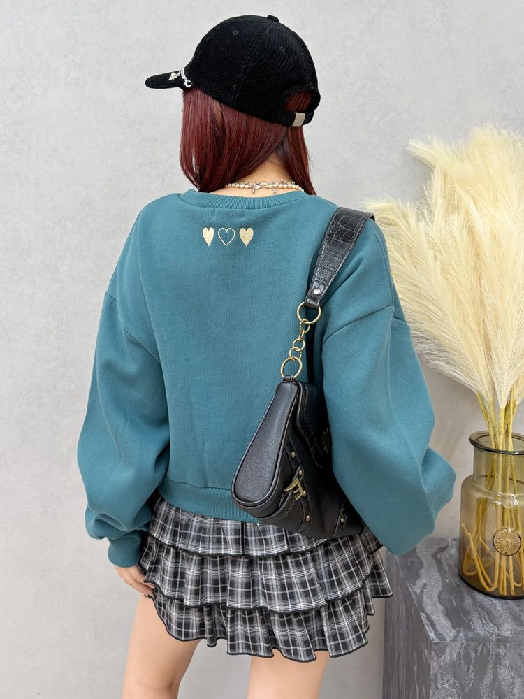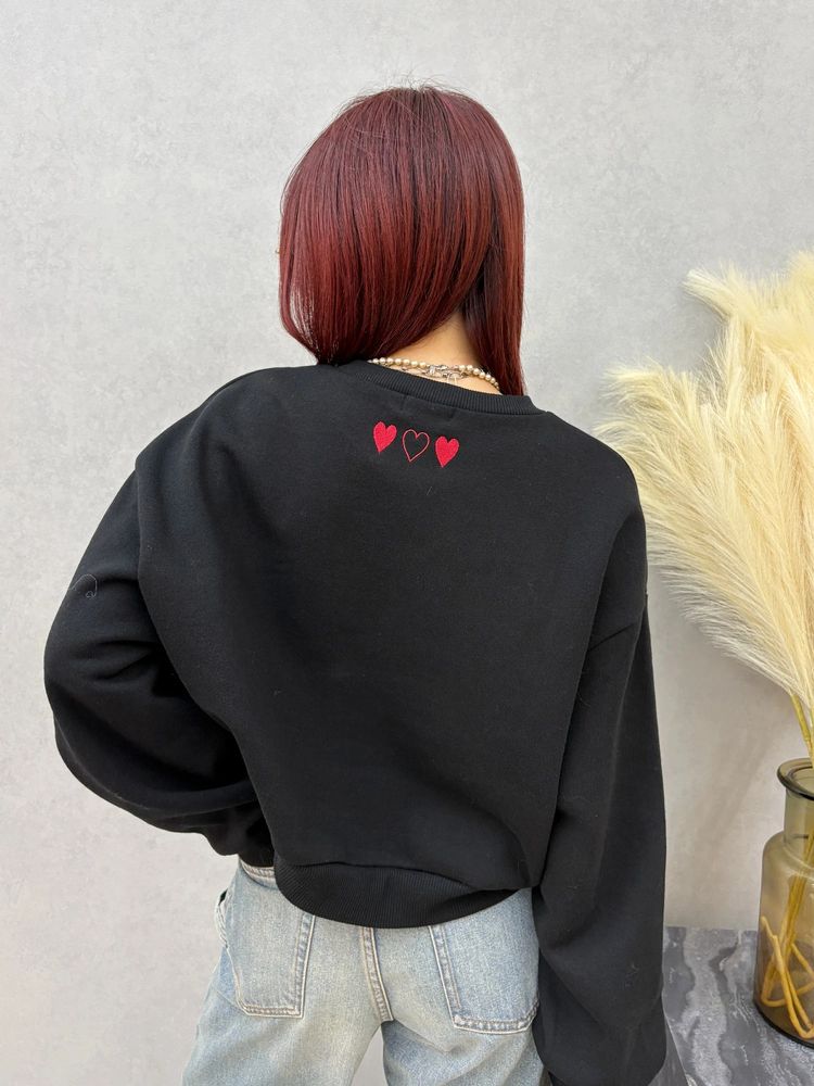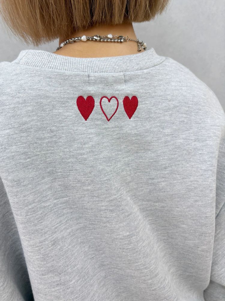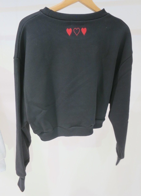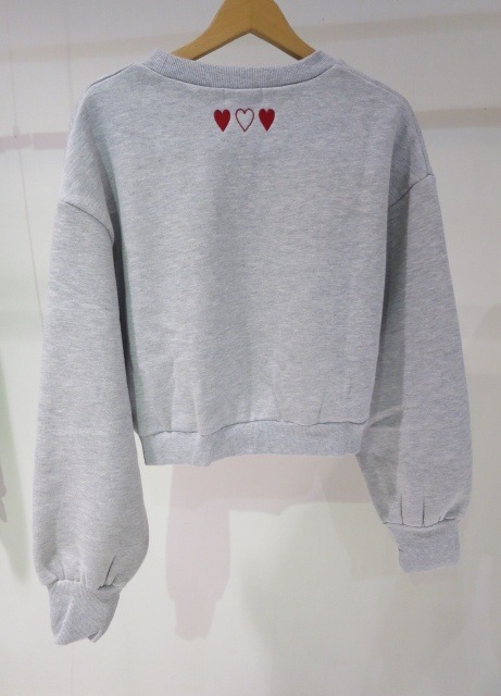 フロントロゴのフロッキープリントがポイントのショートスウェットトップス。 背中の首元にもハートの刺繍が施され トレンドのデザインがキャッチーでかわいい♡ ■スタイリング スタイルUPが叶うショート丈 前後差がありどんなボトムスにも合わせやすいサイズ感です。
