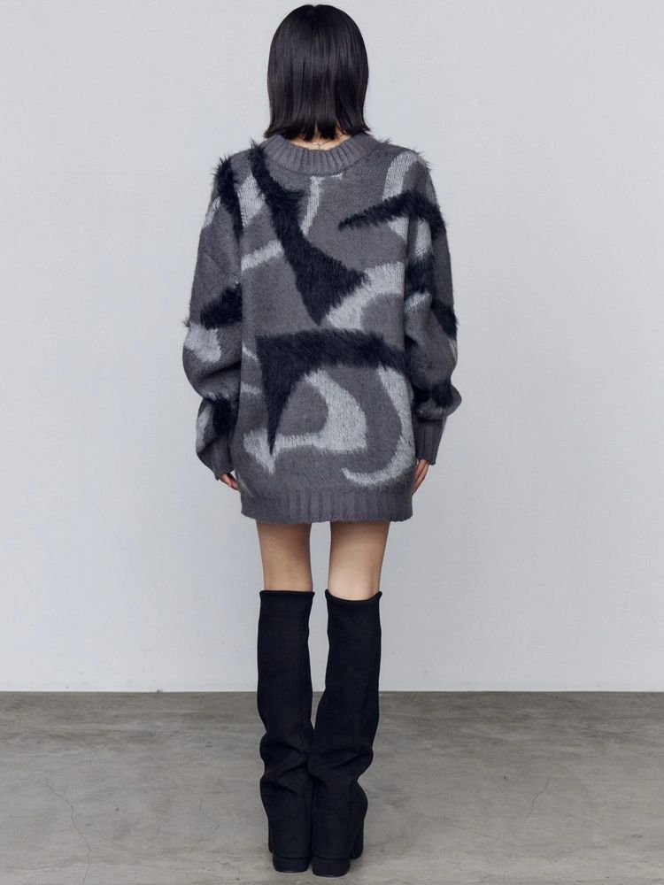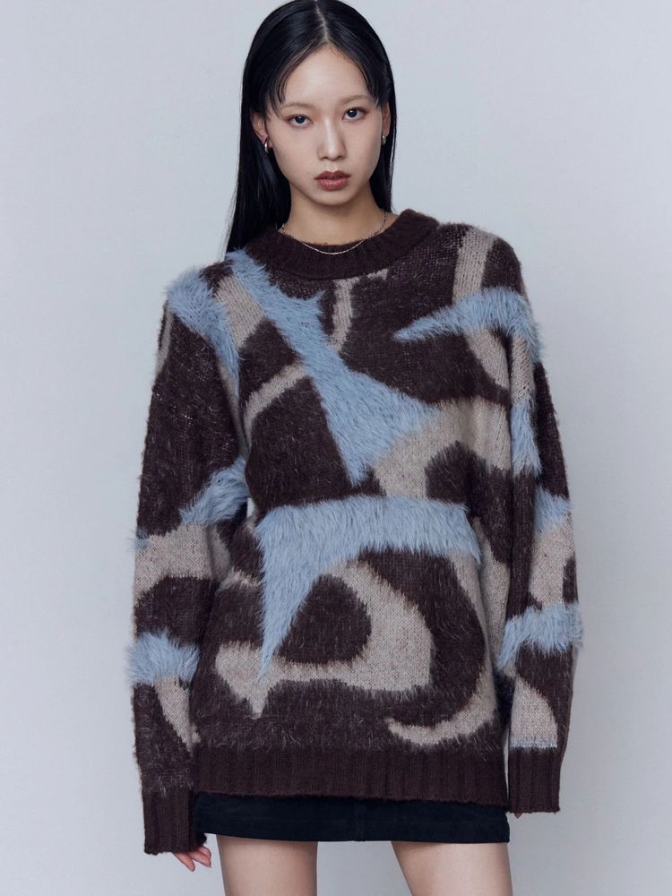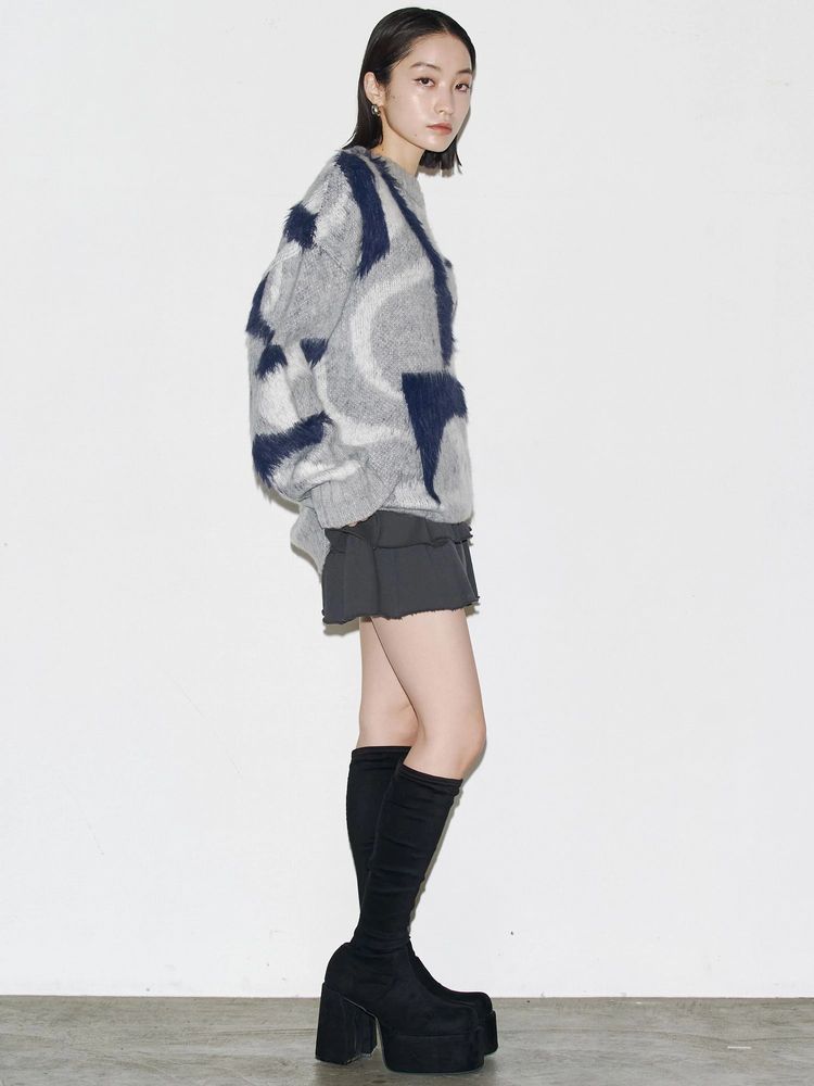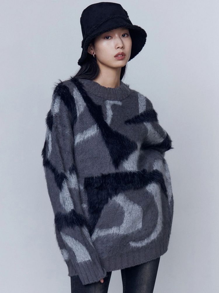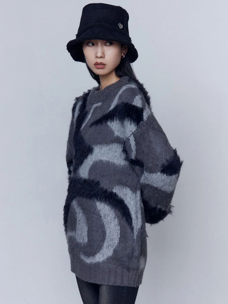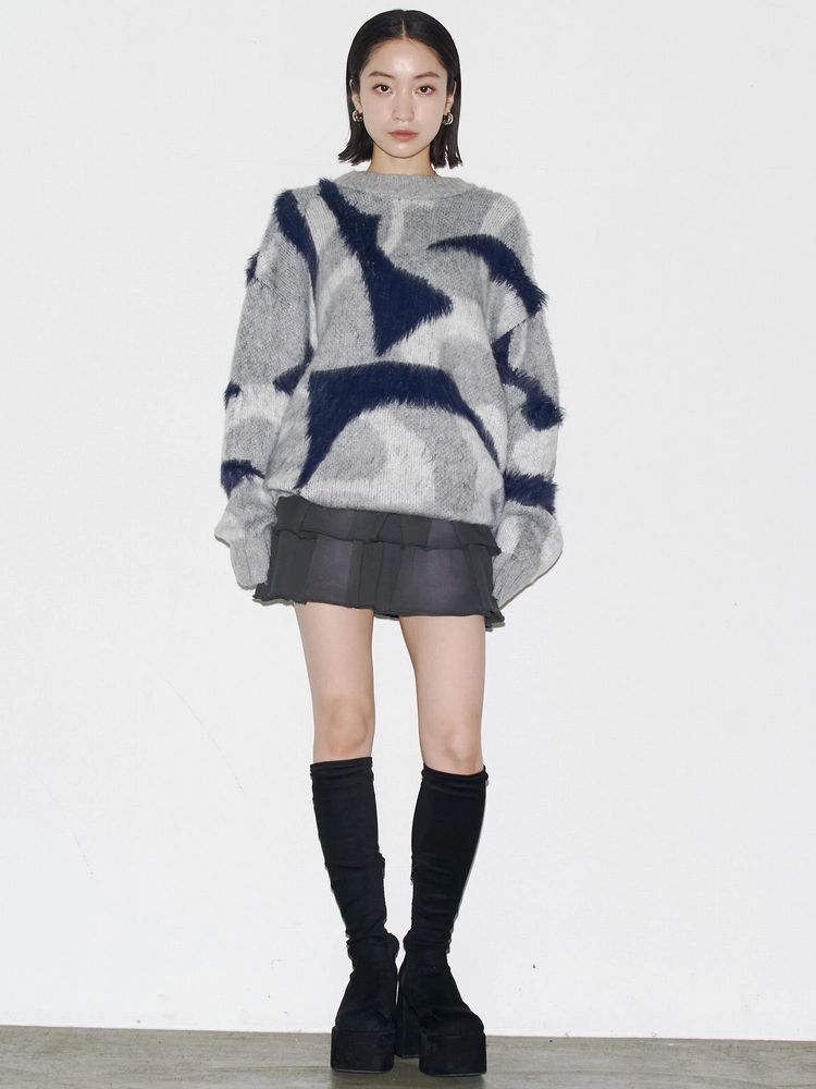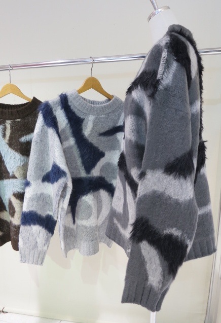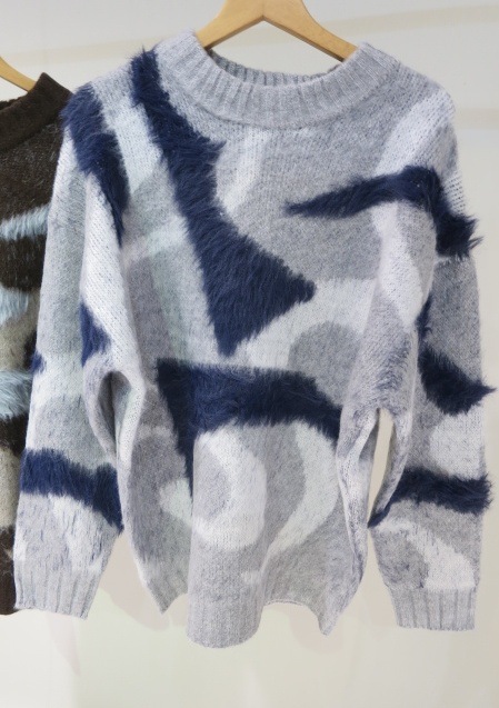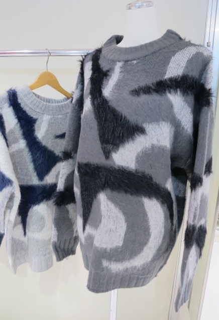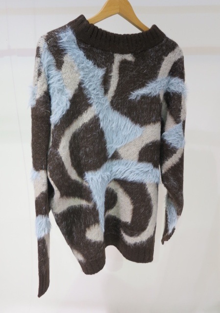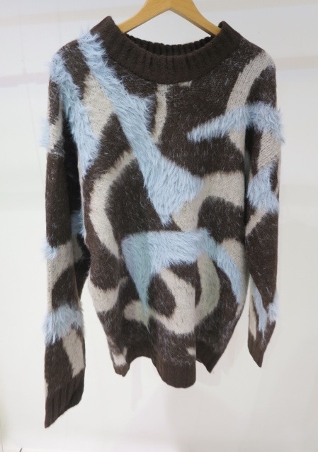 EMODA(エモダ)オリジナルのマーブル柄が目を引くオーバーサイズニット ■デザイン 程よく起毛感があり、あたたかみがある一着。 柄を少しぼかしているので着やすい印象に仕上げています。 ゆったりとしたシルエットでお尻までしっかり隠れる丈感がポイント。 一部分のみ長いシャギー糸で編んでおり、その部分だけ立体感があるように見えるのがポイントです