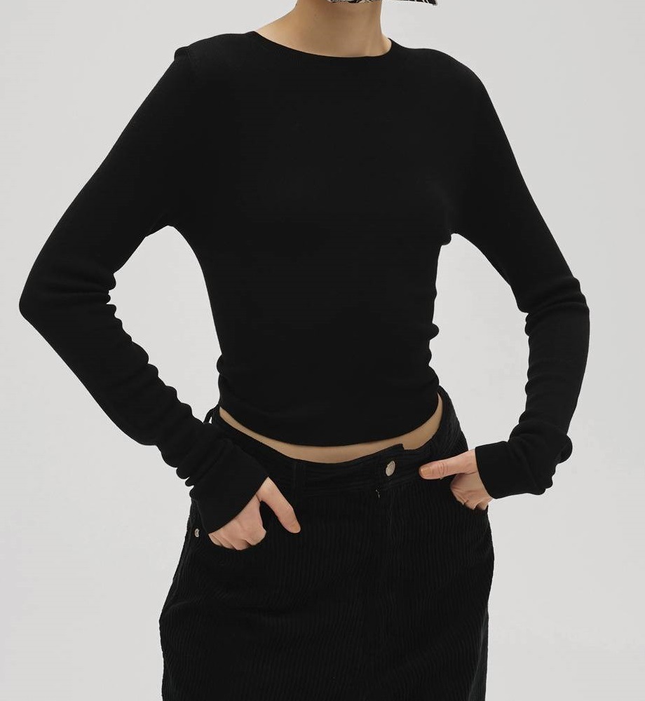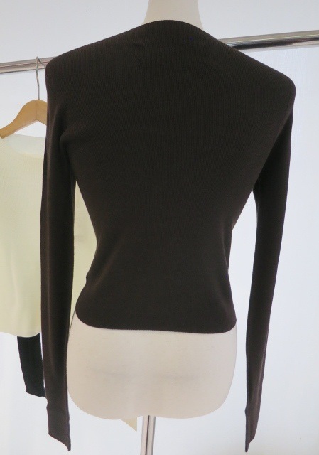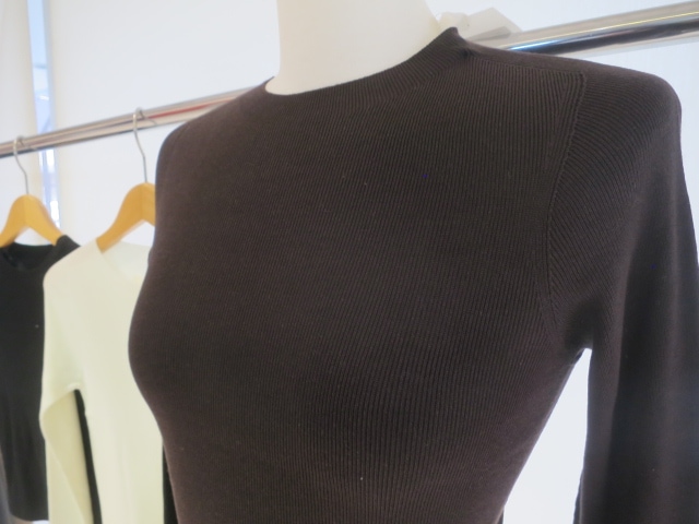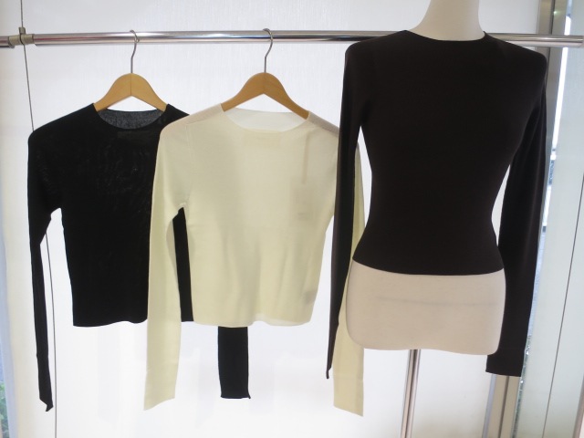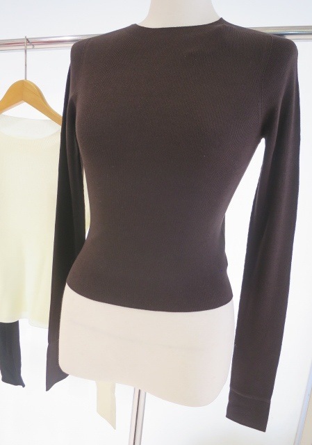 シルク混の肌触りのいい糸で編んだスムースニット。ホールガーメント仕様なので着心地も良く、ほどよいフィット感とコンパクトなサイズが着回しやすいアイテムです。